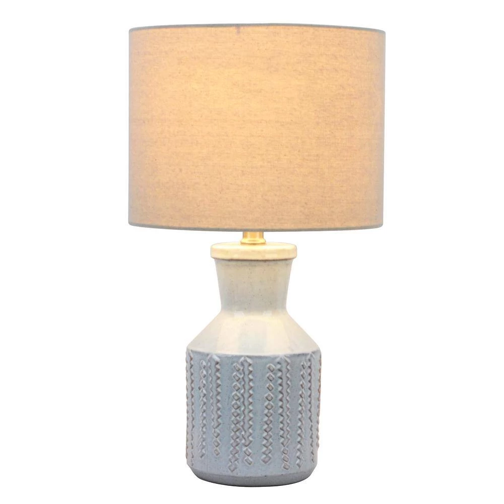 Simple, yet sleek, the Carlisle Blue Reactive Glazed Ceramic Table Lamp will accentuate your decor palette with charm. Boasting a reactive blue glaze finish on a ceramic base, the Carlisle will whet your creativity when choosing style and placement. It serves to brighten up your home with its neutral finish and matching lamp shade and offers a modern appeal that will slide into any decor theme effortlessly. Place it atop your desk, side table or console and enjoy the ambience the Carlisle gives off. Enjoying leisure time or working on projects becomes a bit more pleasurable when you have this accent-piece a part of your decor. Constructed of ceramic and measures 22 in. H x 12 in. W x 12 in. D.