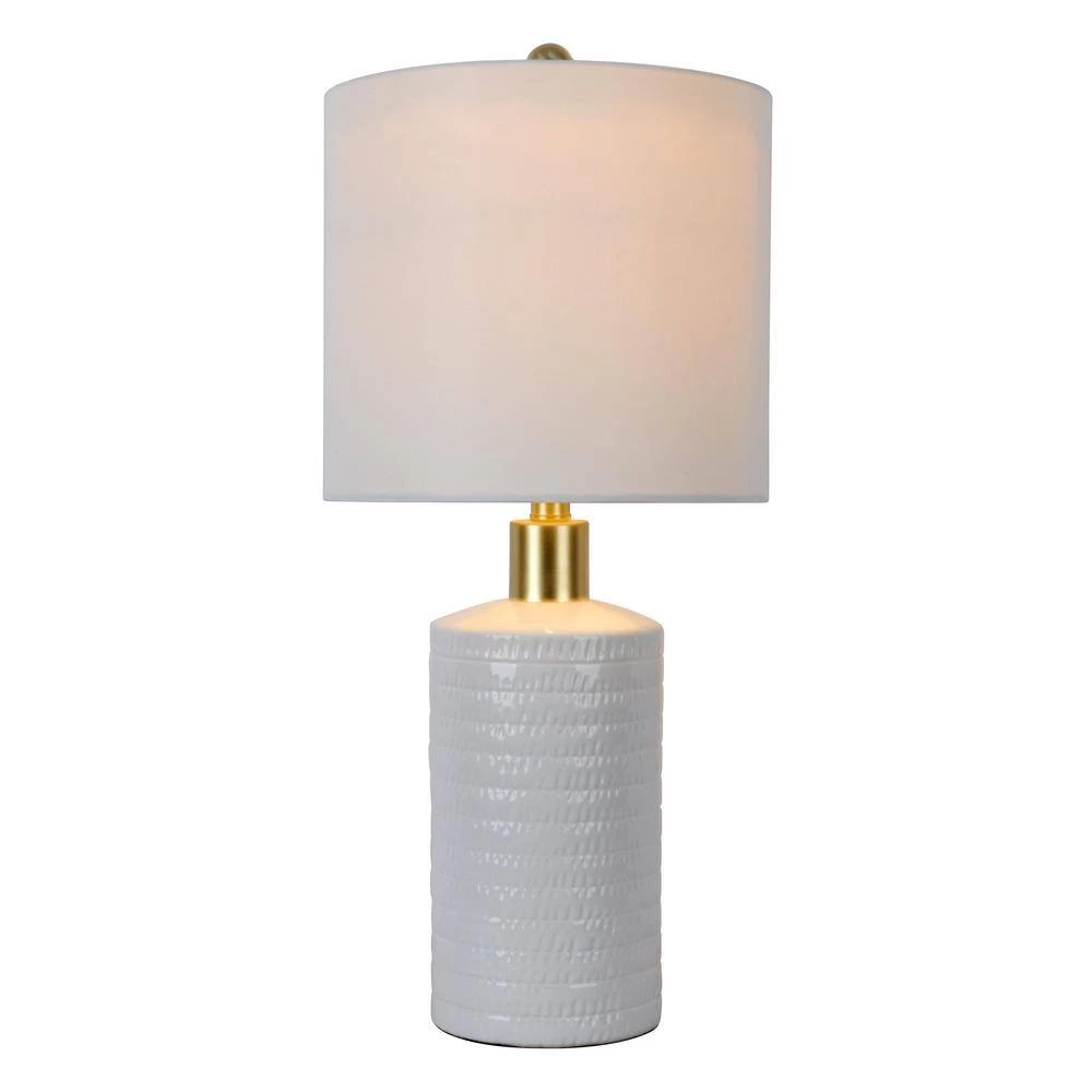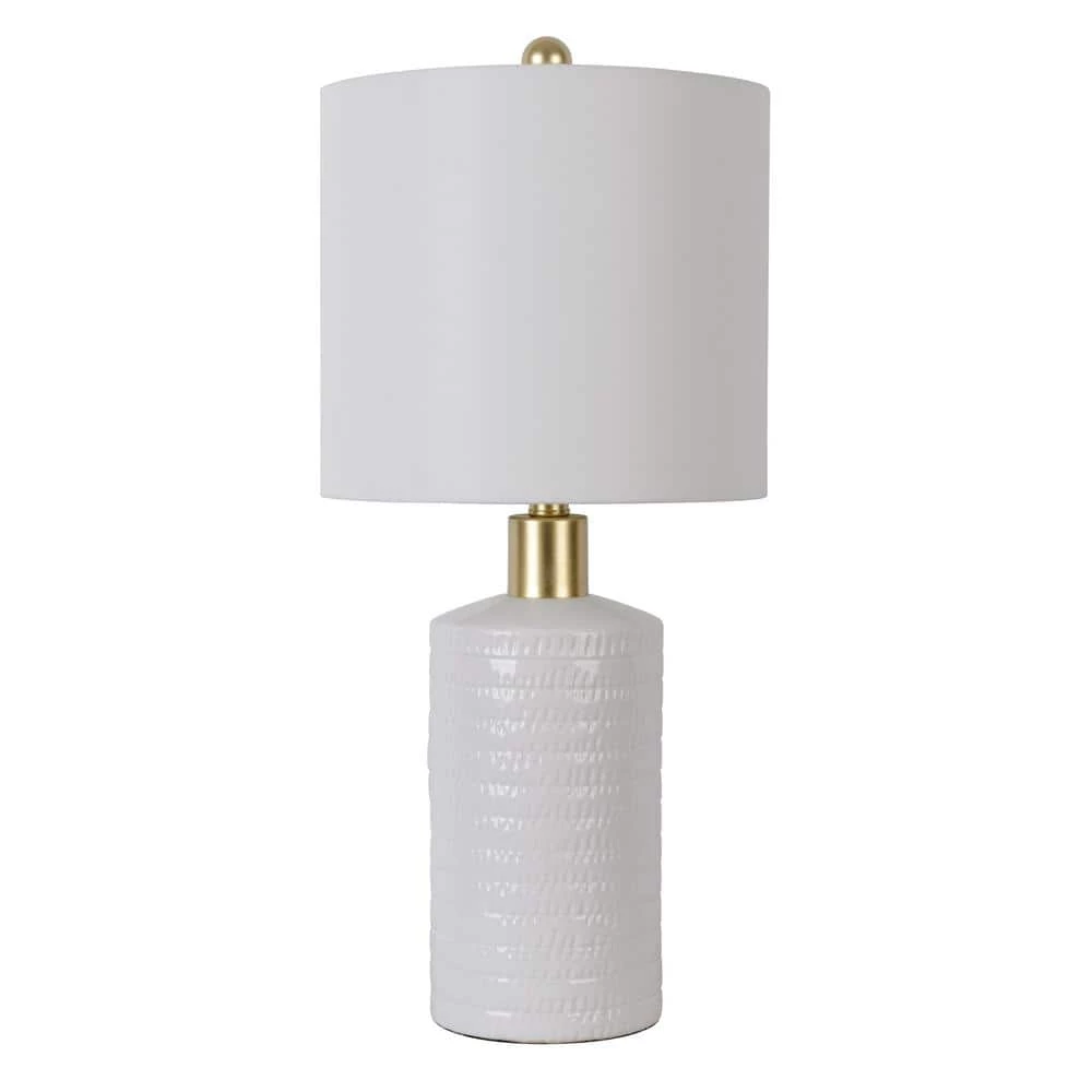 If you’re going for the minimilistic effect in your decor theme, then the Tara Ceramic Textured Pattern Table Lamp will fit right in. Intricately patterned ceramic is finished in a white gloss glaze with a contrasting shiny gold neck and topped off with a white linen hardback drum lamp shade. Placed atop a console in your entryway or in your dining area or living room; the Tara creates an inviting atmosphere with a refreshing aura of simplistic, modern charm. Constructed of ceramic and measures 24.5 in. x 11 in. W x 11 in. D.
