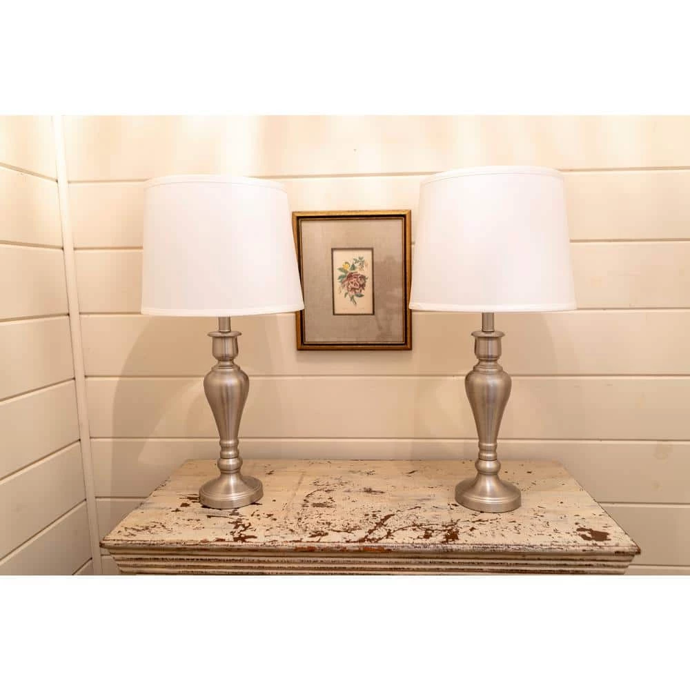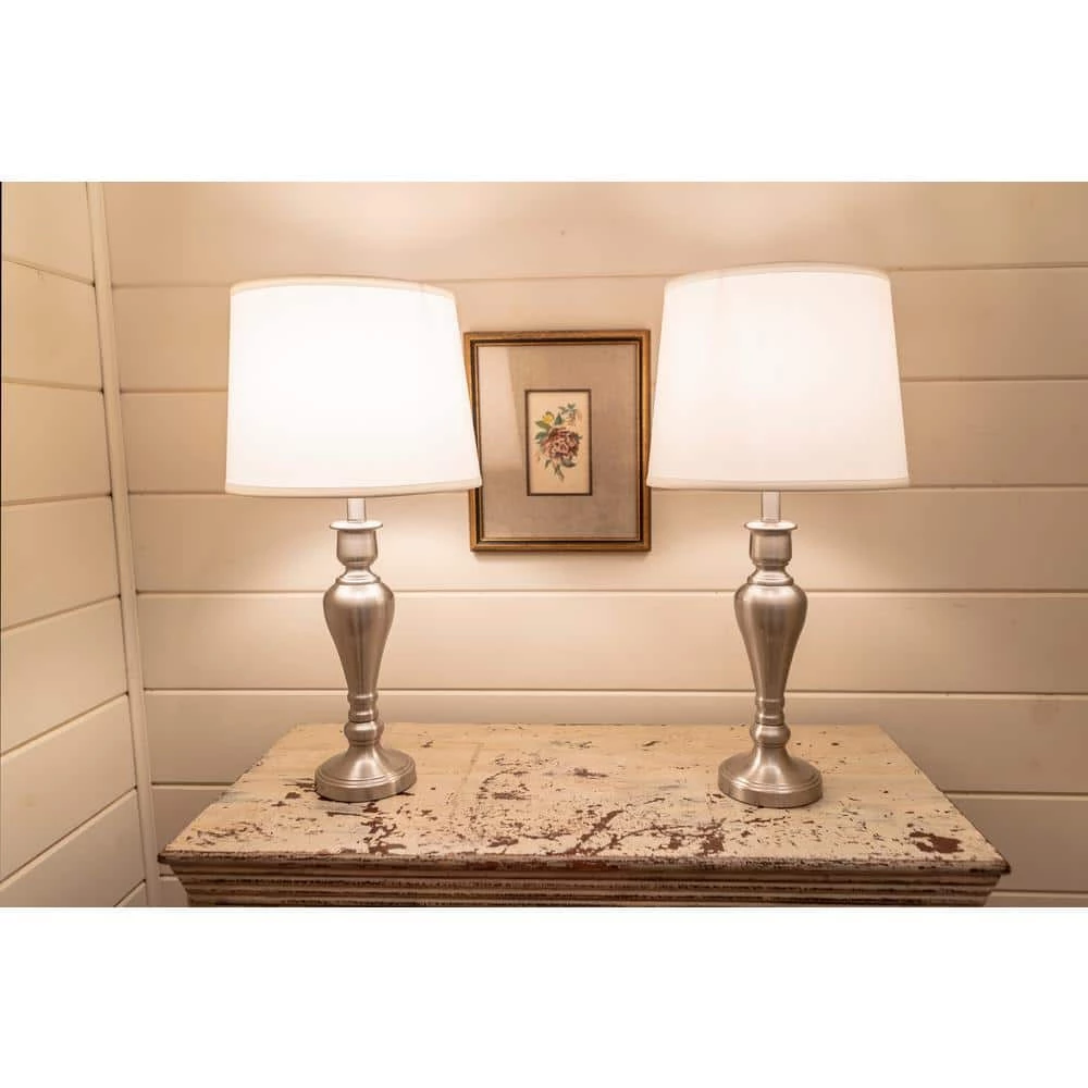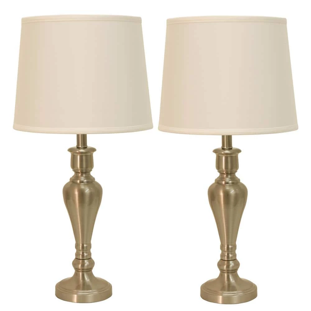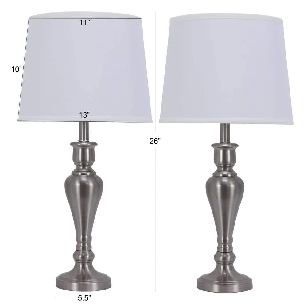 Some looks and finishes will always be in style, the timelessness of the Marie Table Lamp Set will ensure that your night stand, console table or side tables look as classic in 10-years as they do today. The traditional shape of the steel base is complimented by a modern round faux silk drum shade, lending a transitional look that will effortlessly incorporate style and light into your home’s decor. The touch control function allows you to easy turn on and off these lamps. Flank each side of your sofa or bed with this set of two lamps or break the set up to add accent lighting in different rooms. Each lamp requires one (1) 100-Watt bulb, not included. Measures 13x13x26 in.