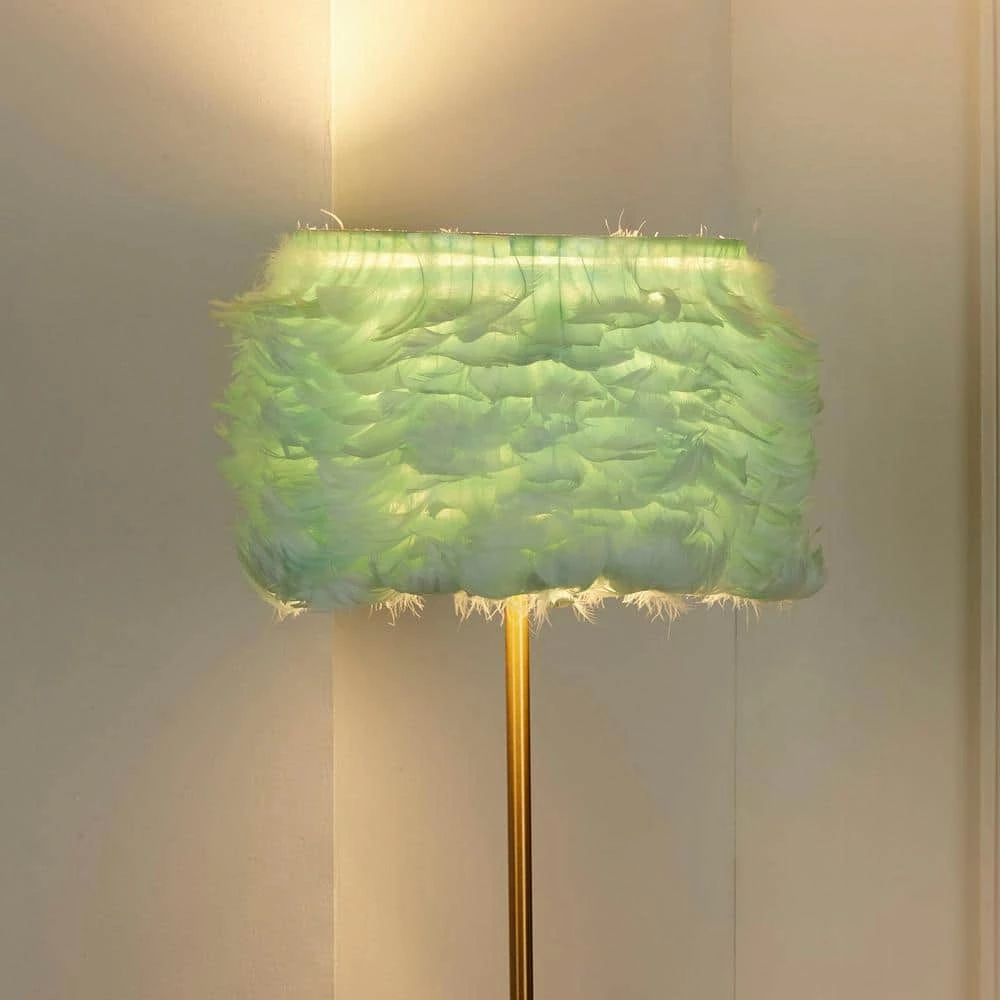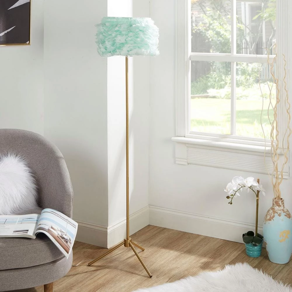 Look no further than the 59 in. Fiona Feather Shaded Tri Leg Floor Lamp when creating a themed decor. Its classic, gold finished base is embellished with a ombre pink feathered drum lamp shade that illuminates the shabby chic style in its purest form. Place it in areas where you rely on femininity to detail your design and watch the Fiona go into action. The tri-legged base adds a touch of modernism that makes this lovely lamp trendy and brings your space’s style around full circle. Constructed of metal and feathers and measures 59 in. H x 15 in. W x 15 in. D.