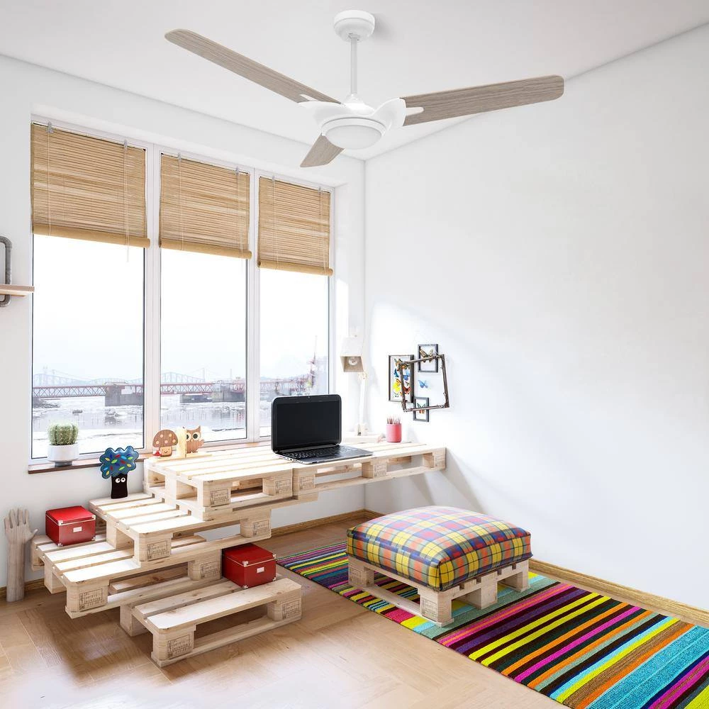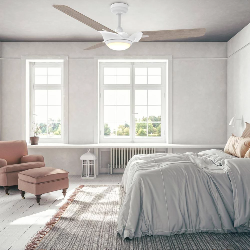 This Alden 56 in. smart ceiling fan keeps your space cool, bright and stylish. It is a soft modern masterpiece perfect for your large indoor living spaces. This Wi-Fi smart ceiling fan is a simple design with white finish, using high quality light oak gray plywood blades and has an integrated 4000K daylight LED. The fan features remote control, Wi-Fi apps and Voice Control Technology (compatible with Amazon Alexa and Google Home Assistant, but not included) to set fan preferences.