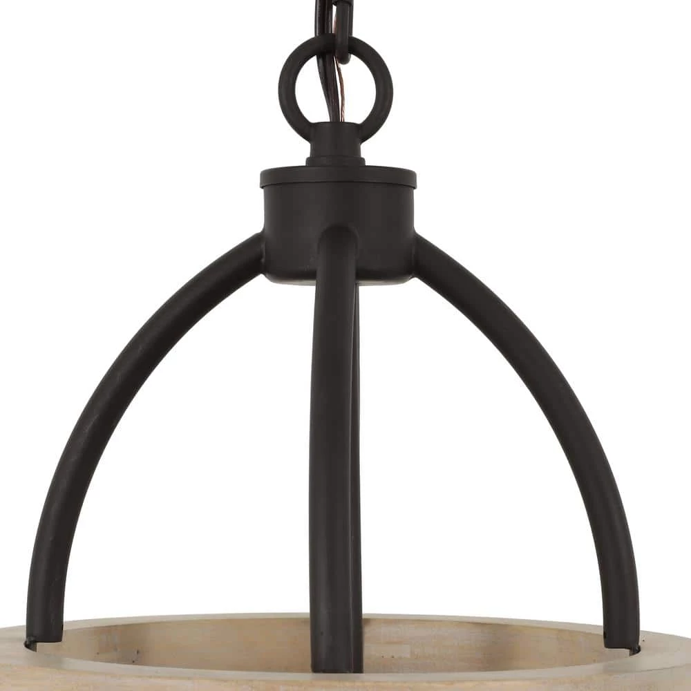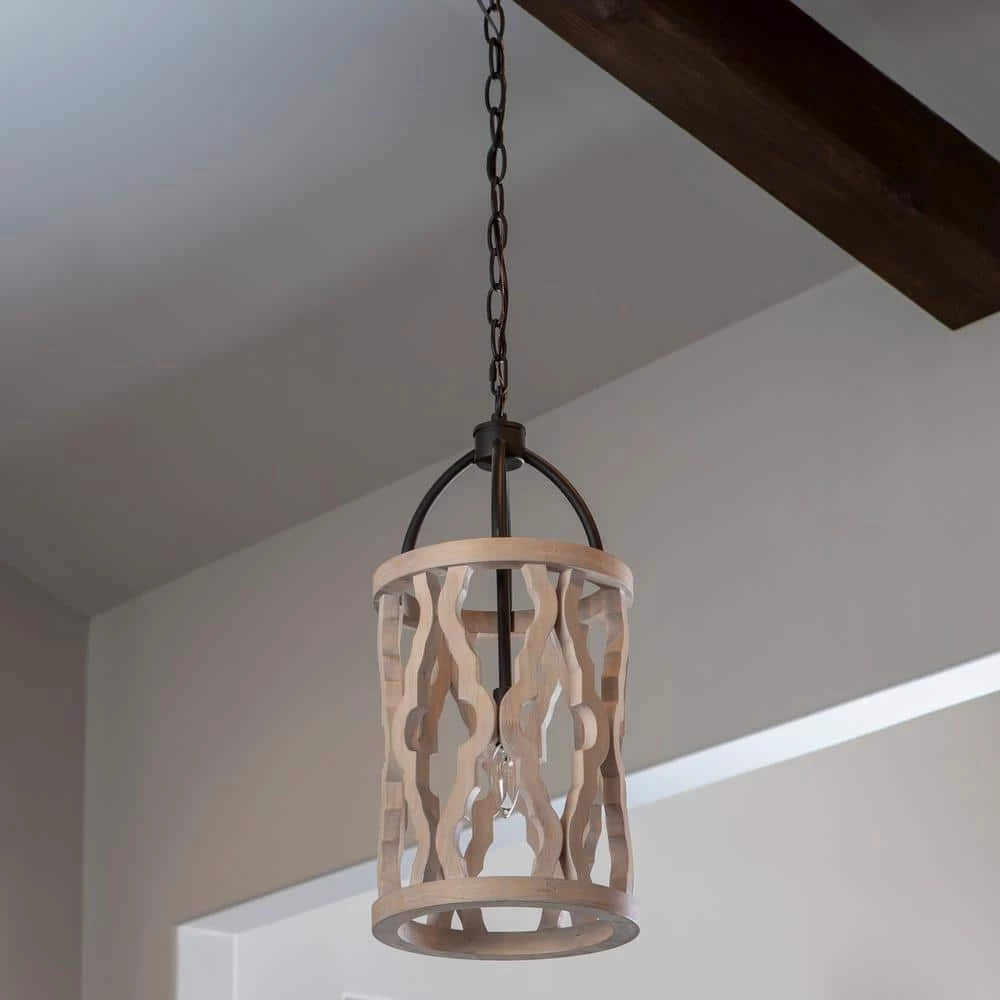 Combine chic patterning with farmhouse charm in this open wood chandelier. The cylindrical shade is the star of the piece, featuring an allover pattern of open, carved wood in a natural finish. A metal frame curves at the pendant’s top and is suspended from a classic chain. Pair with a stylish Edison bulb for warm light and elevated modern style.