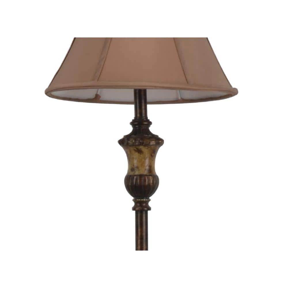 A timeless floor lamp that will outlast any trend. This transitional piece features an elegant, glitzy finish and an elegant round faux silk bell shade in taupe. The 3-Way light feature gives you the flexibility to brighten and dim your room to the perfect brightness. Constructed of resin. Requires one 100-Watt bulb, not included. Measures 14 in. x 14 in. x 60 in.