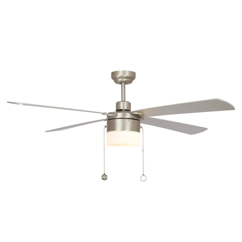 - The Alrich 52″ ceiling fan has a dome-style light with frosted glass. Includes 1 x E26 bulb base (light bulb not included).