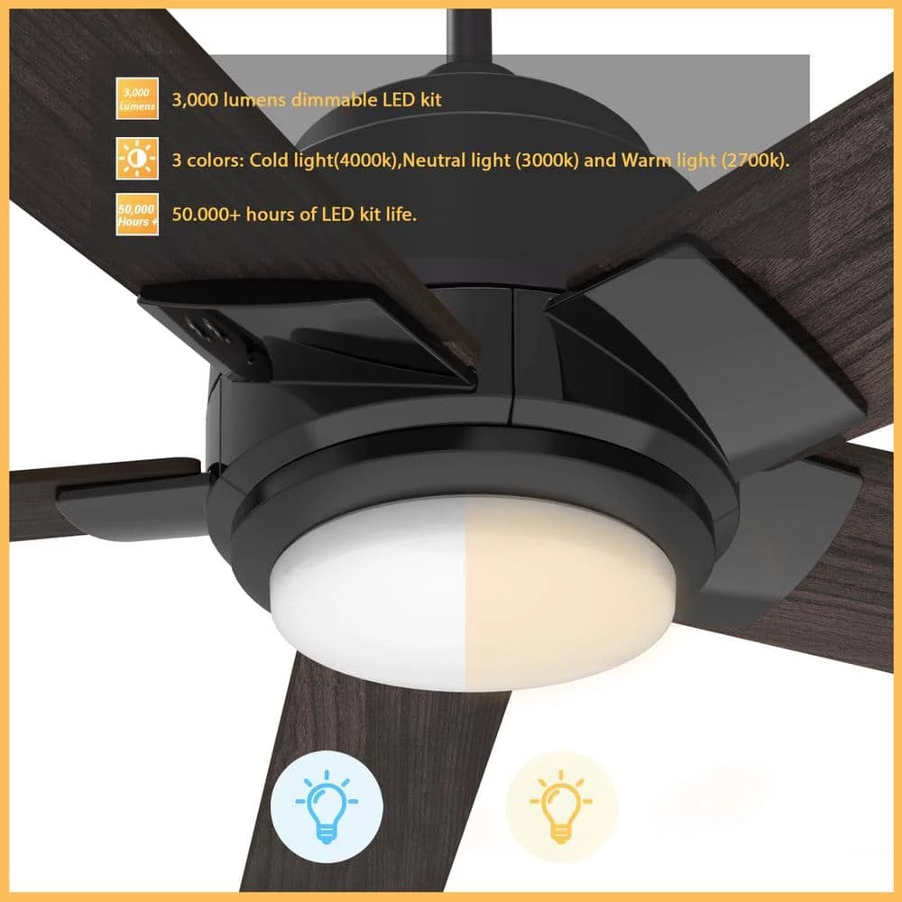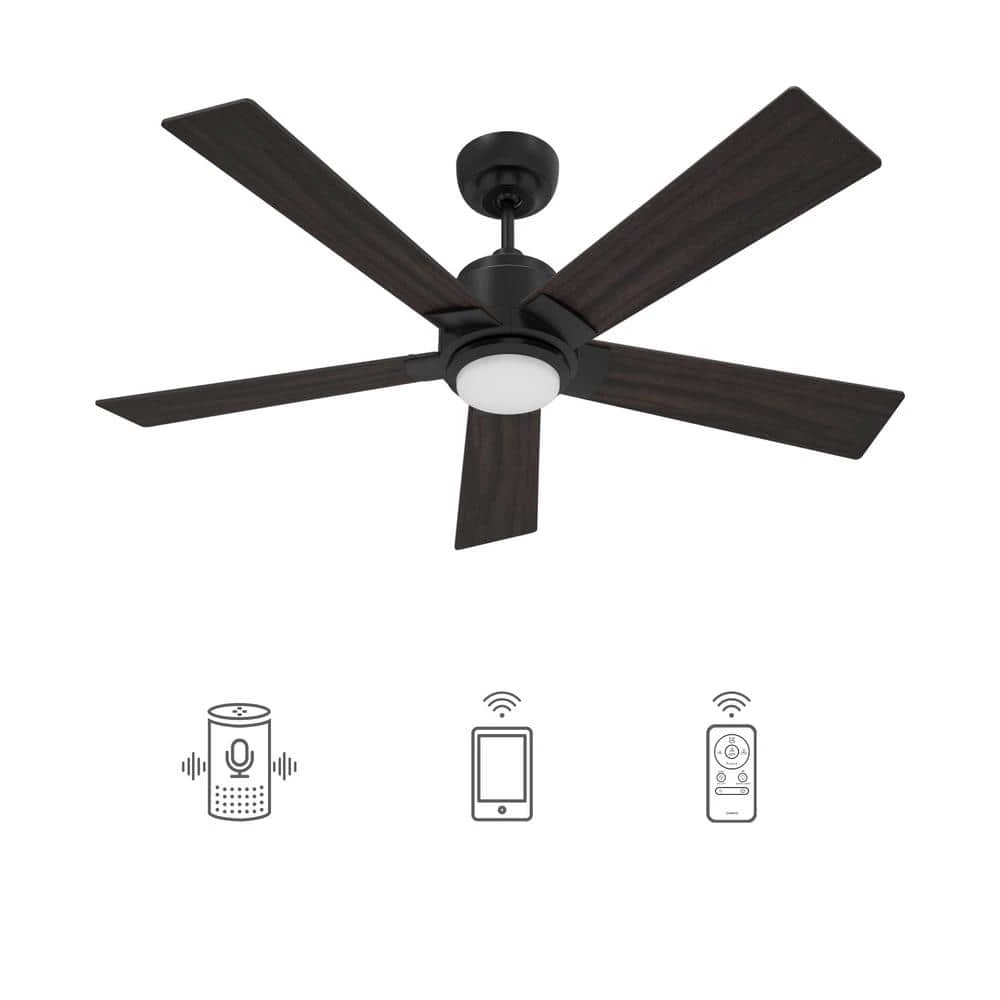 This Aspen 52 in. smart ceiling fan keeps your space cool, bright, and stylish. It is a soft modern masterpiece perfect for your large indoor living spaces. This Wifi smart ceiling fan is a simple design with black finish, using high quality plywood blades and has an integrated 4000K daylight LED. The fan features remote control, Wi-Fi apps and Voice Control Technology (compatible with Alexa and Google Home Assistant, but not included) to set fan preferences.