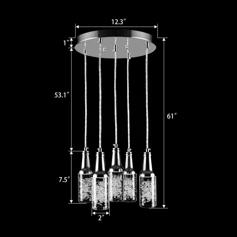 - Electric cord gives a maximum flexibility in hanging heights, freely to adjust this lighting fixture to your desired height, choose from 1 to 5 bottle options to fit your home decoration