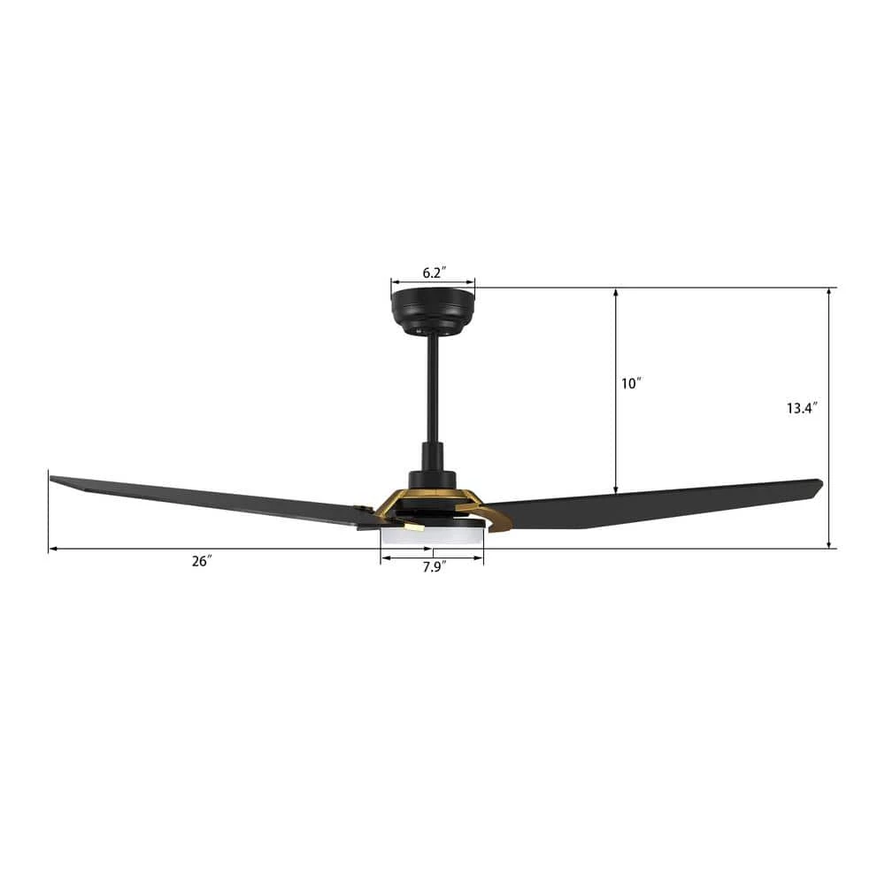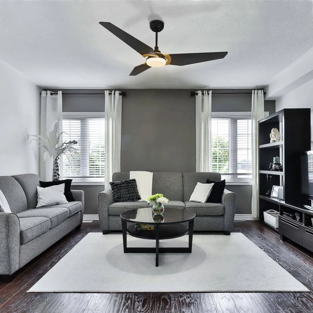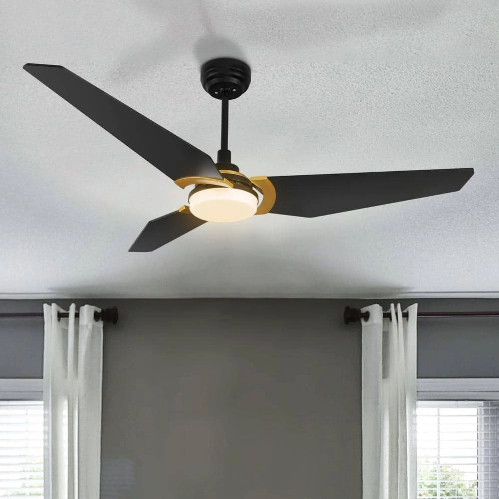 This Brently 52 in. smart ceiling fan keeps your space cool, bright, and stylish. It is a soft modern masterpiece perfect for your large indoor living spaces. This Wi-Fi smart ceiling fan is a simple design with black & gold finish, using high quality plywood blades and has an integrated 4000K daylight LED. The fan features remote control, Wi-Fi apps and Voice Control Technology (compatible with Alexa and Google Home Assistant, but not included) to set fan preferences.