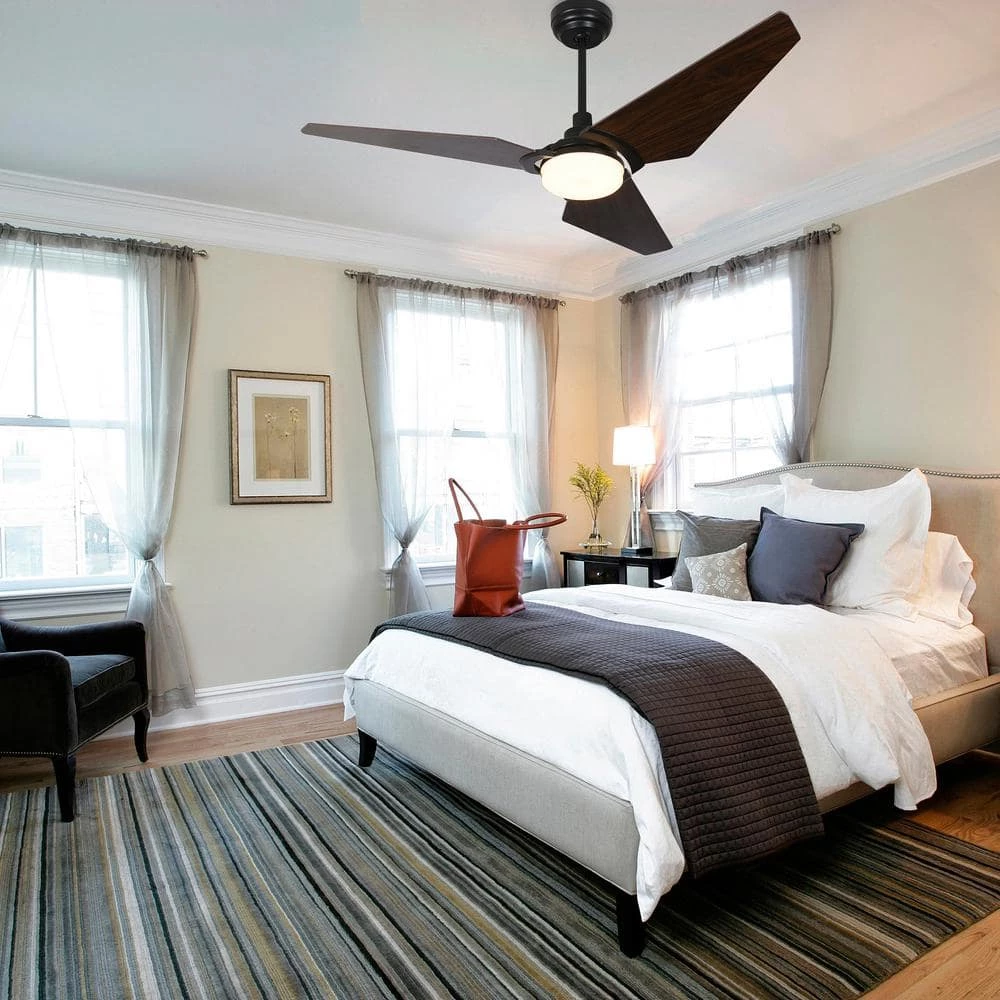 This Brently 52 in. smart ceiling fan keeps your space cool, bright and stylish. It is a soft modern masterpiece perfect for your large indoor living spaces. This Wi-Fi smart ceiling fan is a simple design with black finish, using 3 high quality plywood blades and has an integrated 4000K daylight LED. The fan features remote control, Wi-Fi apps and Voice Control Technology (compatible with Alexa and Google Home Assistant, but not included) to set fan preferences.