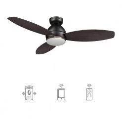 Compact and commanding, this Bretton 48 in. smart ceiling fan offers a simple and elegant design for even the most limited spaces. It is available in an array of colors and wood finishes to complement any decor trend. The fan features a burnished metal exterior black and complementing reversible blades for a modern addition to any home decor.