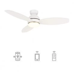 Compact and commanding, this Bretton 48 in. smart ceiling fan offers a simple and elegant design for even the most limited spaces. It is available in an array of colors and wood finishes to complement any decor trend. The fan features a burnished metal exterior white and complementing blades for a modern addition to any home decor.