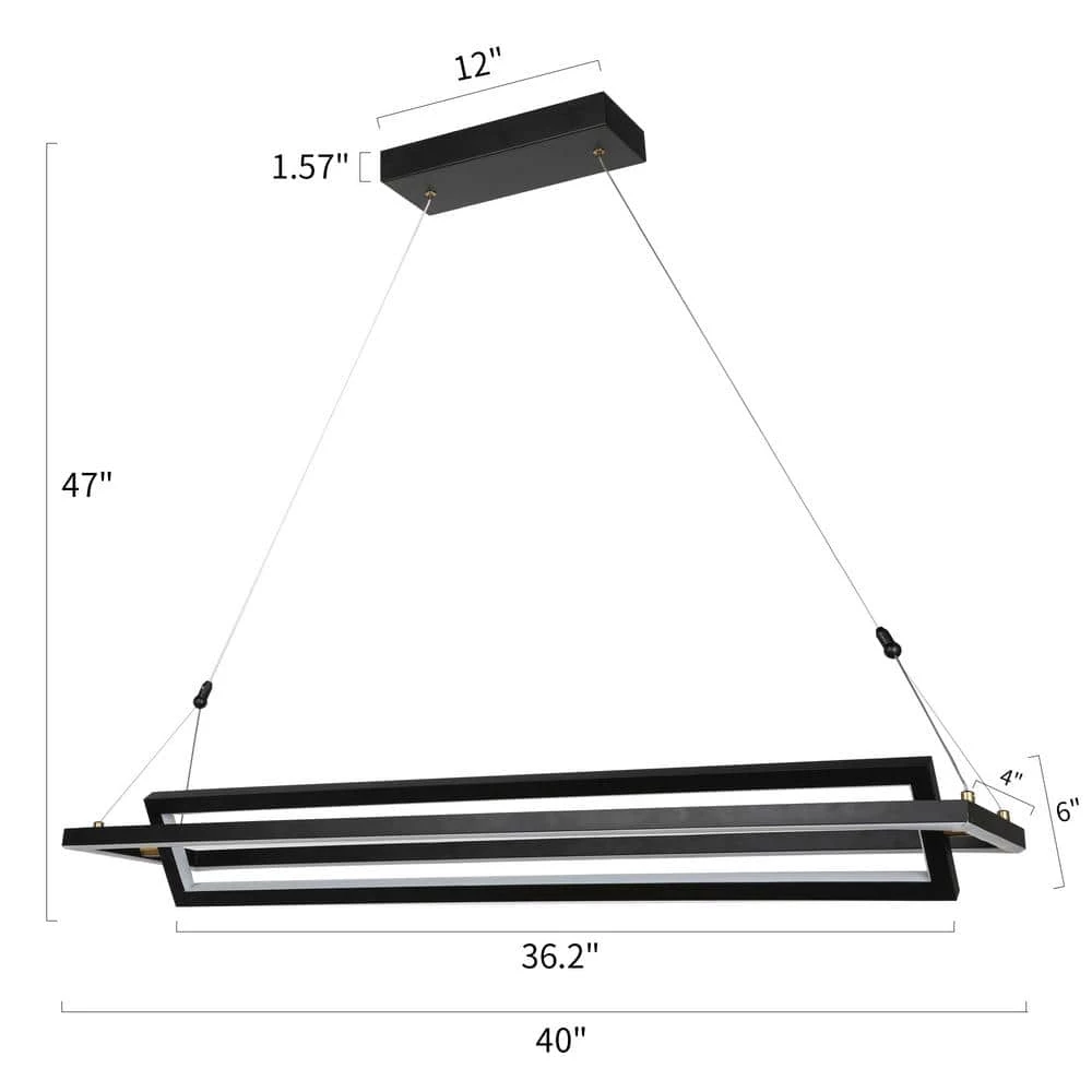 This Bristol integrated LED Chandelier pendant light is a dramatic addition to any room, elevate your living area with the beautiful artistry of this pendant. The inner rectangle is adjustable from direct to indirect lighting according to the versatile needs we have for light during distinct times of the day. It features matte black aluminum fixture and provides a unique, creative and fashion style. This pendant light is a good choice for kitchens and dining rooms. It can greatly enhance the aesthetics of the room.