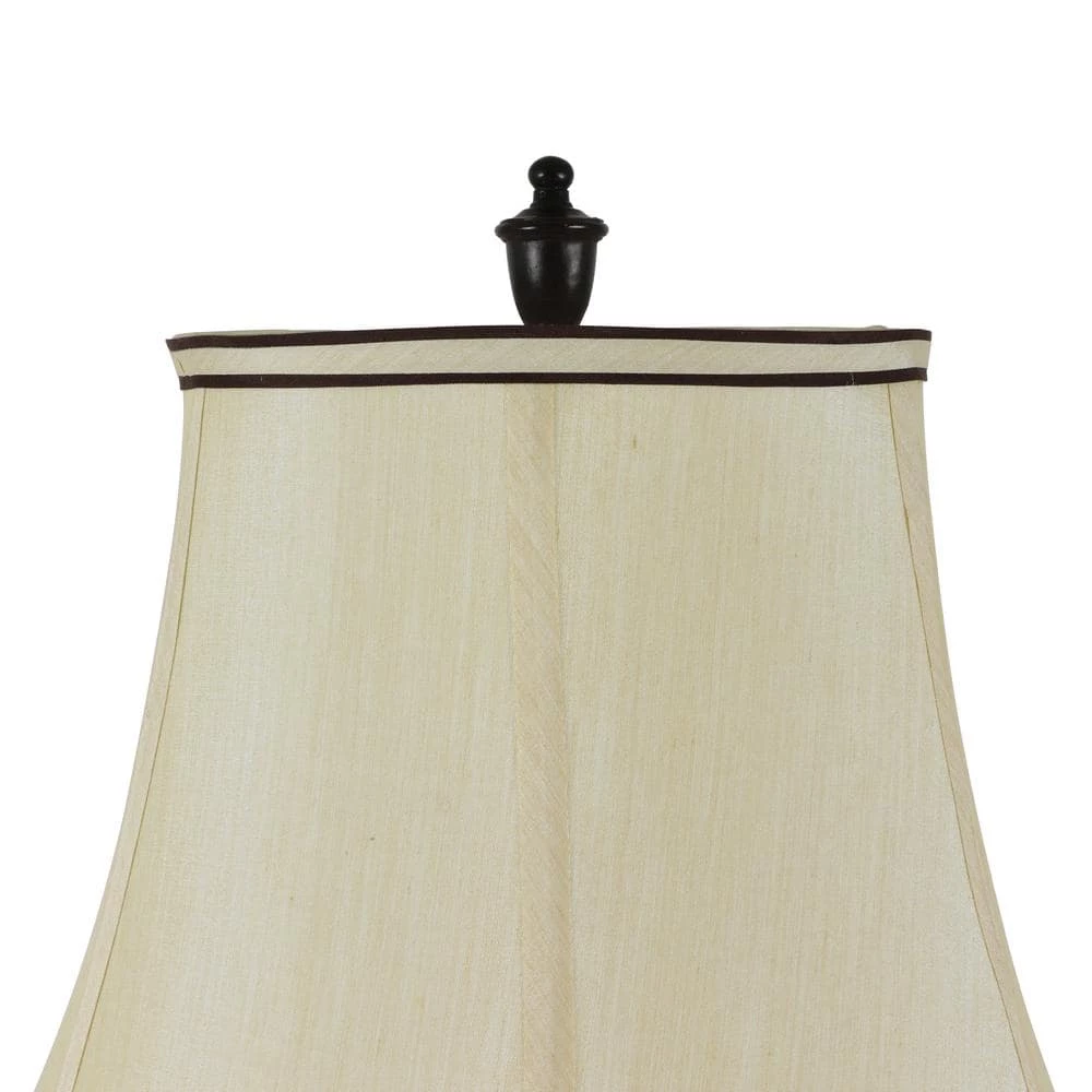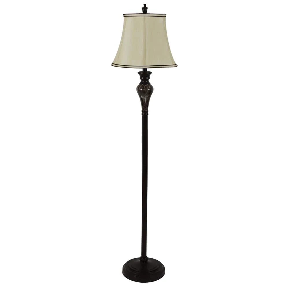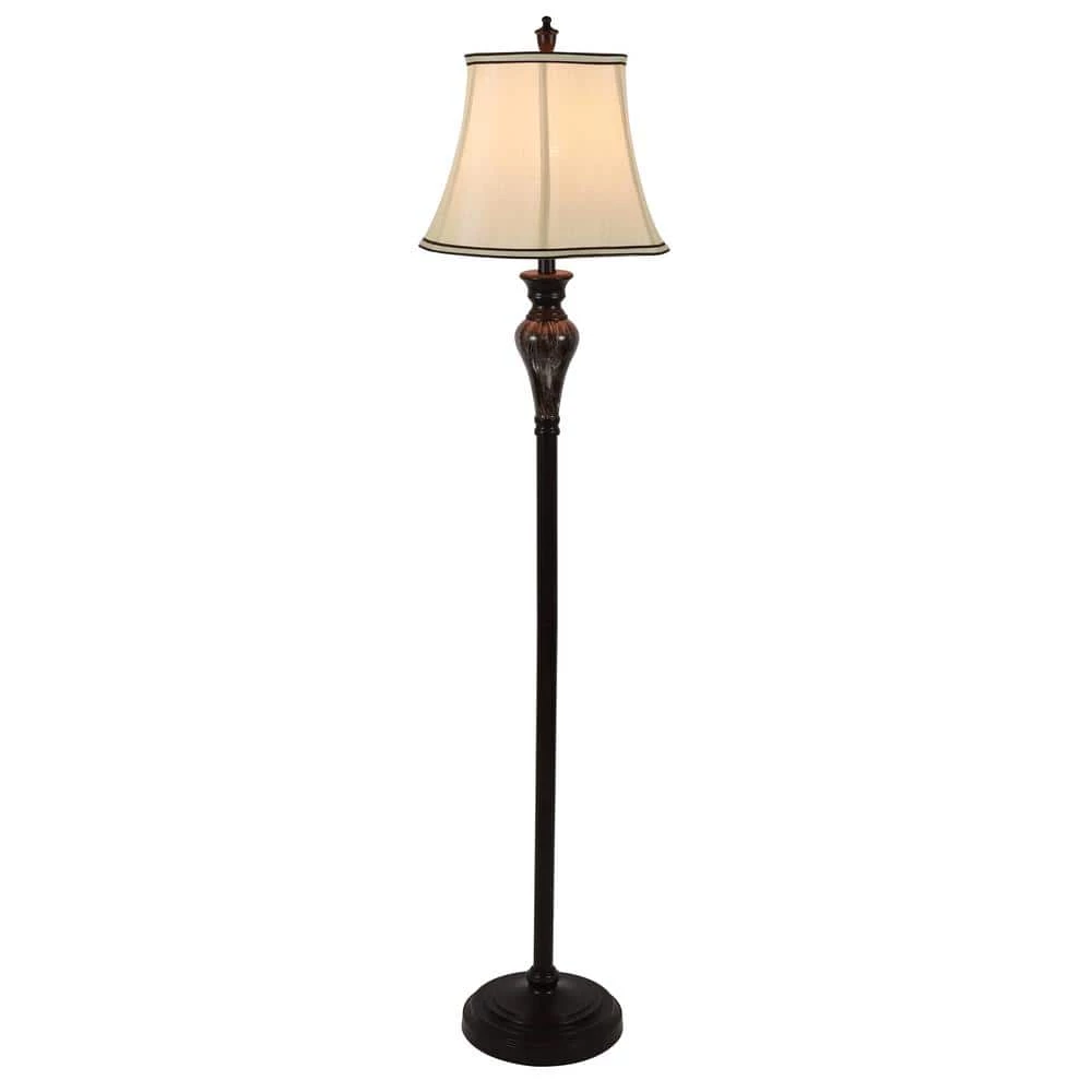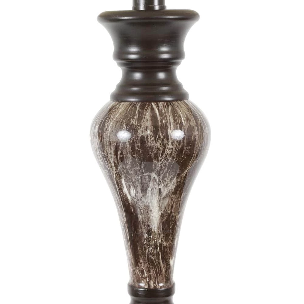Tradition and luxury collide in this elegant floor lamp, perfect for lighting up any small space. The standout feature is the curvature crafted in faux-marble near the top of the base. Brown and water transfer printing gives the faux-marble look, which sets the tone for this sophisticated stylings. The structured shade finishes the look with contrast trims and a simple carved top piece.
