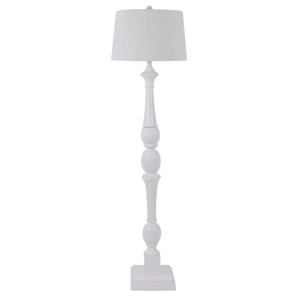Lighting plays an important role in decorating. Not only does a well-placed floor lamp brighten a living room, bedroom or entryway, but the warm wood finish of the Crossmill Baluster Floor Lamp brings the rustic element of the outdoors inside in a refined and sophisticated manner. This sculpted floor lamp features a harmonious blend of traditional design and modern elements to create a look that is transitional and timeless. The rustic nature of the wood tone is complimented by a white round drum shade, keeping the overall look modern and fresh. The 3-way light feature allows you to give the perfect amount of lighting for every occasion, whether its reading or entertaining. Requires one 150-Watt bulb, not included. Constructed of resin. Measures 16 in. L x 16 in. W x 61.25 in. H.