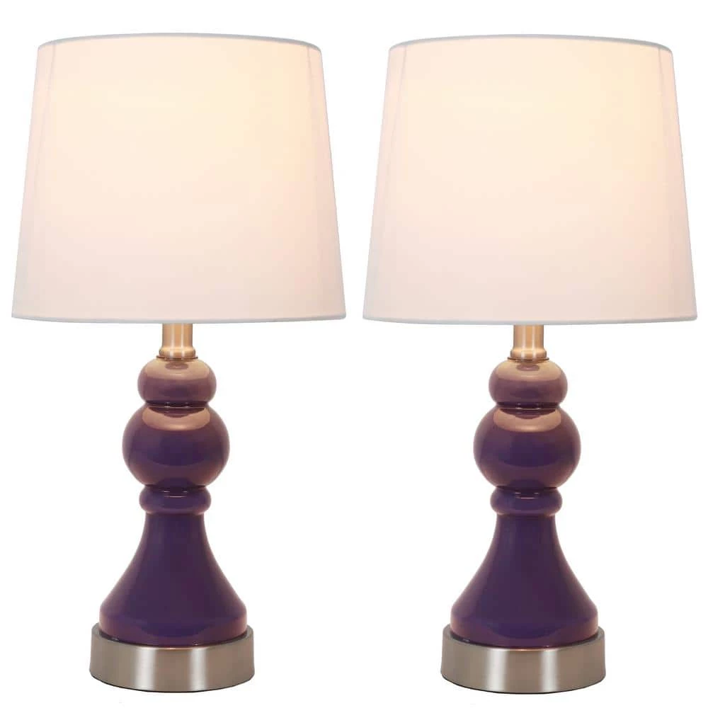 Crafted in softly painted glass, this set includes two mid-century style lamps in a fun chess piece-inspired silhouette. The simple round bases are crafted in brushed metal, while the classic drum shades offer crispness and texture. And for exceptional functionality, a built-in USB port offers easy charging for your portable devices. The 2-piece set works well for a console table, matching end tables or nightstands.