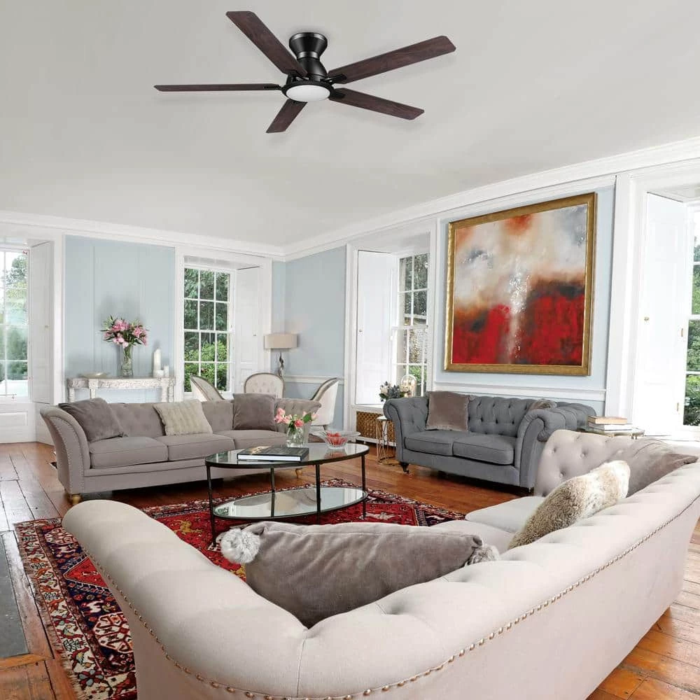 This Essex 52 in. smart ceiling fan keeps your space cool, bright and stylish. It is a soft modern masterpiece perfect for your large indoor living spaces. This Wi-Fi smart ceiling fan is a simple design with black finish, using high quality plywood blades and has an integrated 4000K daylight LED. The fan features remote control, Wi-Fi apps and Voice Control Technology (compatible with Alexa and Google Home Assistant, but not included) to set fan preferences.