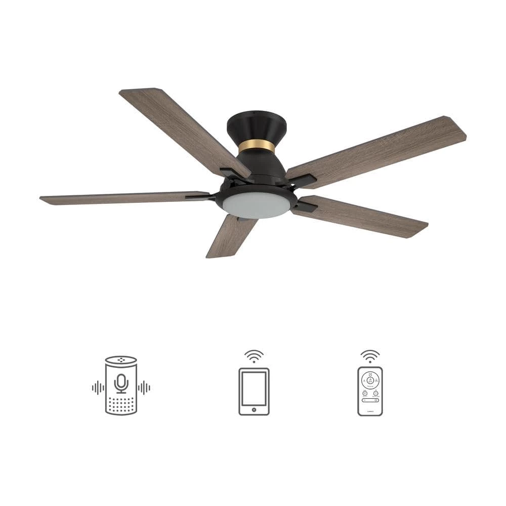 This Essex 52 in. smart ceiling fan was created to transform your outdoor patio into a beachside resort. Enjoy the cooling and powerful airflow that its long blades deliver during summer afternoons or bask in the warm bright light on winter evenings. The fan features a burnished metal exterior black, complementing blades and elegant gold accents for a modern addition to any home decor.