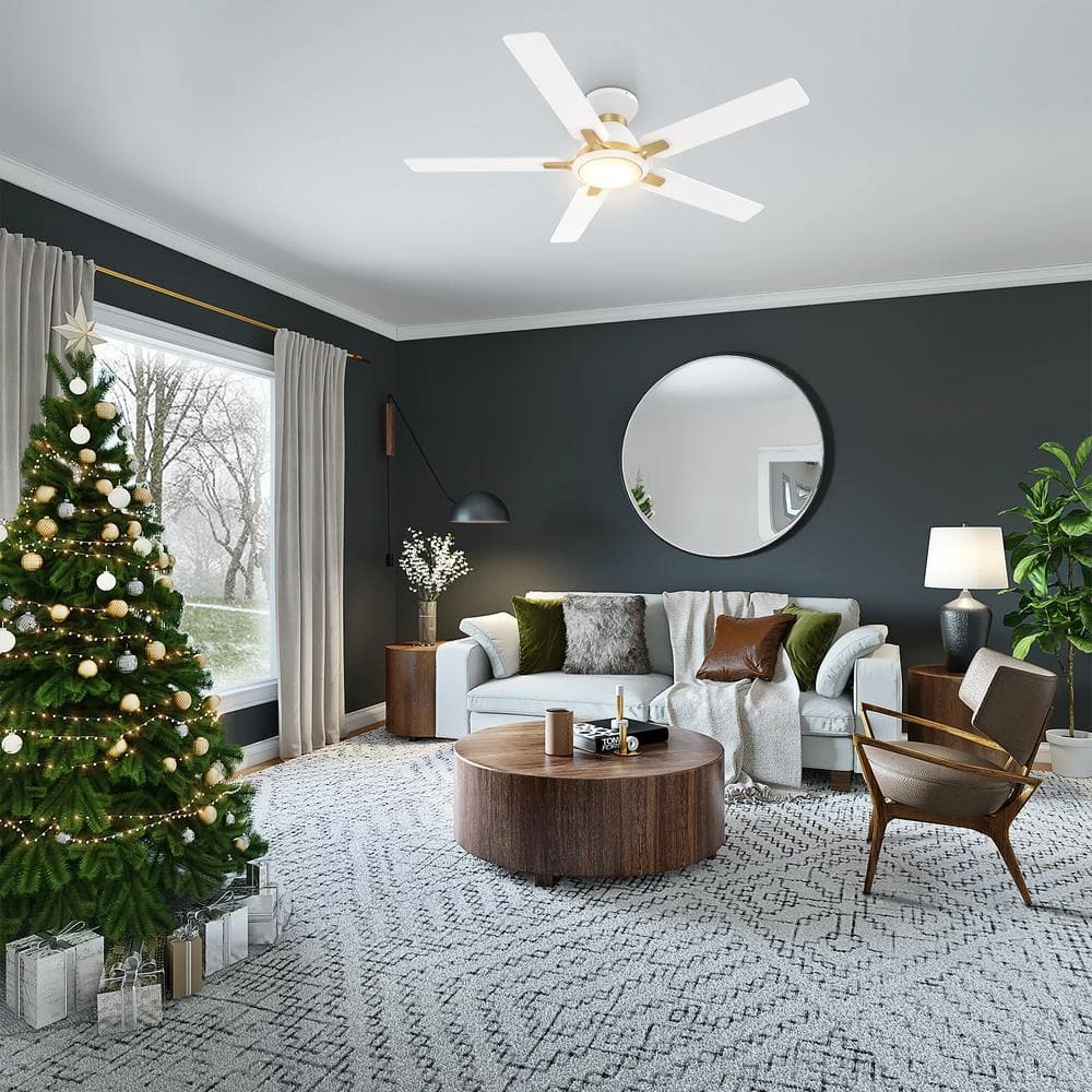 This Essex 52 in. smart ceiling fan keeps your space cool, bright and stylish. It is a soft modern masterpiece perfect for your large indoor living spaces. This Wi-Fi smart ceiling fan is a simple design with white and gold finish, using high quality plywood blades and has an integrated 4000K daylight LED. The fan features remote control, Wi-Fi apps and Voice Control Technology (compatible with Alexa and Google Home Assistant, but not included) to set fan preferences.