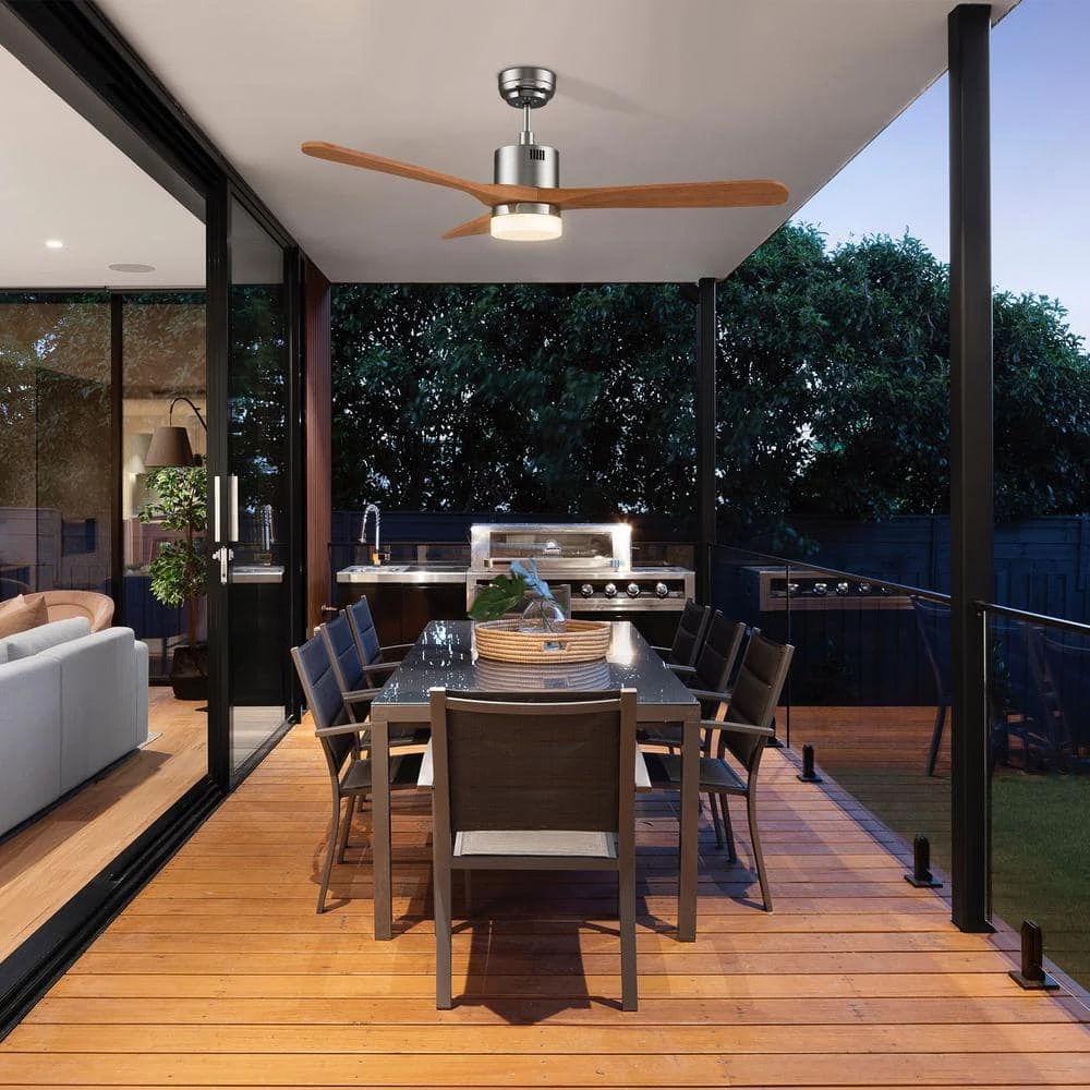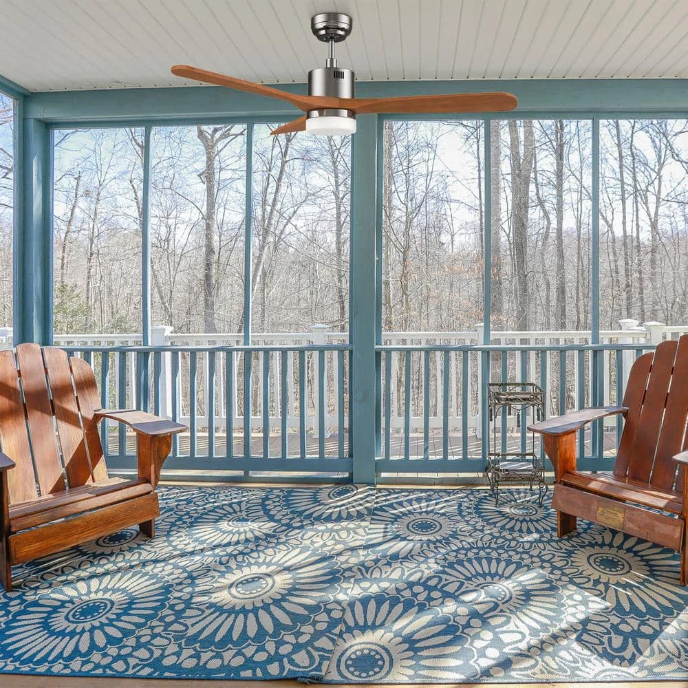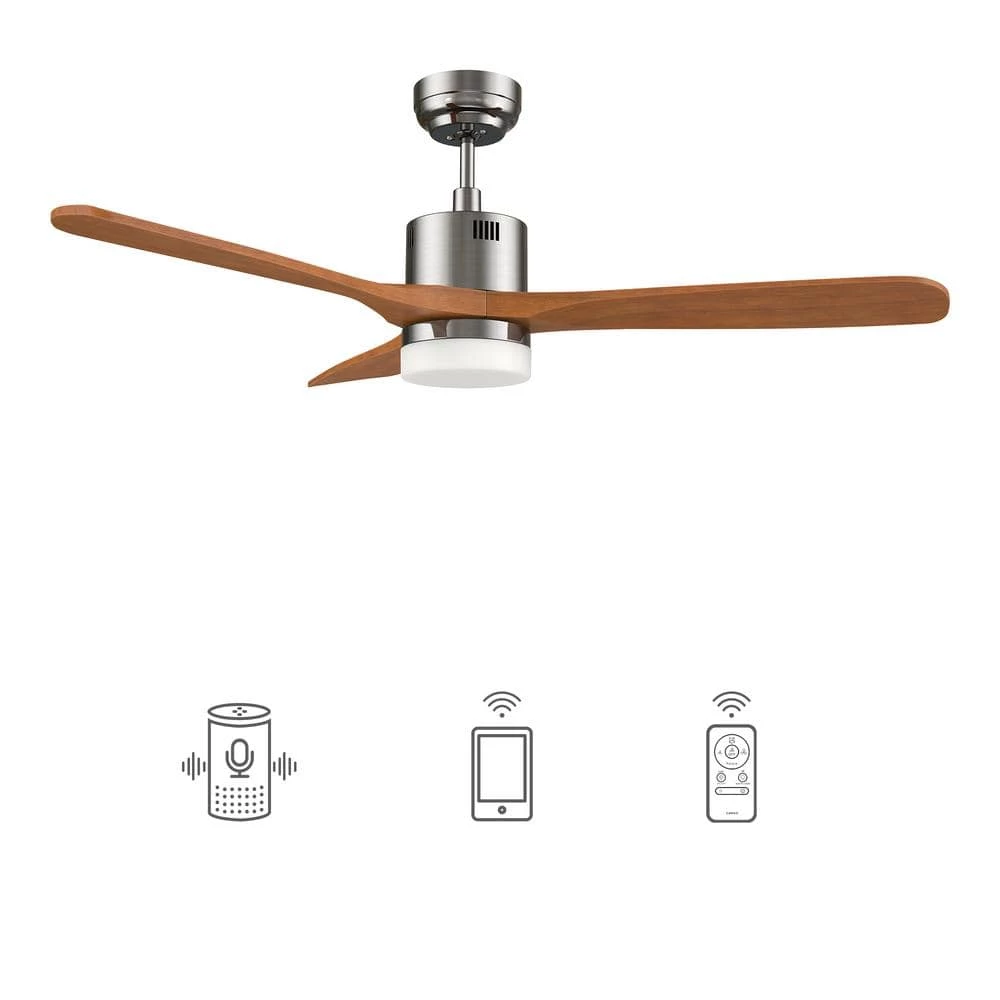 Designed with Sycamore solid wood blades and a frosted light cover, this Eton 52 in. smart ceiling fan makes for a majestic and powerful addition to your home. The brushed nickel body and solid wood finish blades are sure to complement any traditional or farmhouse decor while the powerful airflow and lighting will keep your space stylish and cool. Its innovative smart technology will satisfy your air and lighting needs.