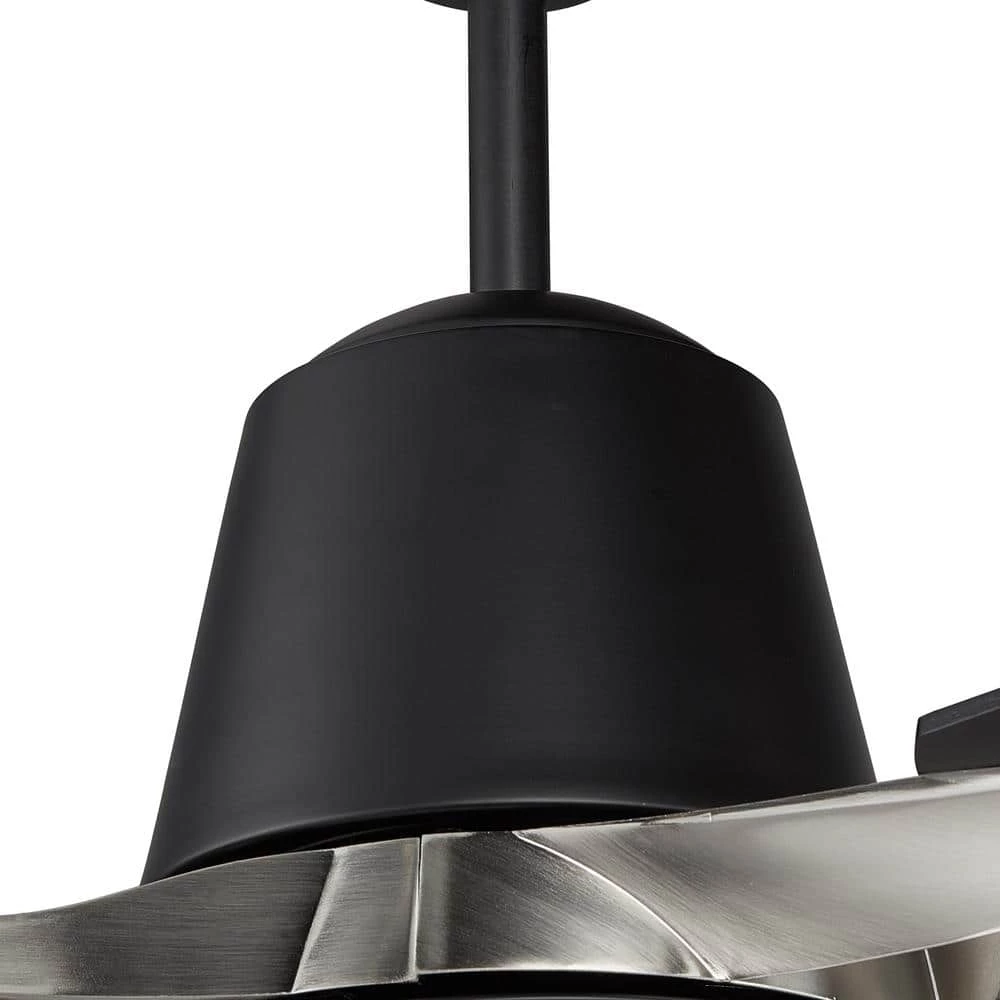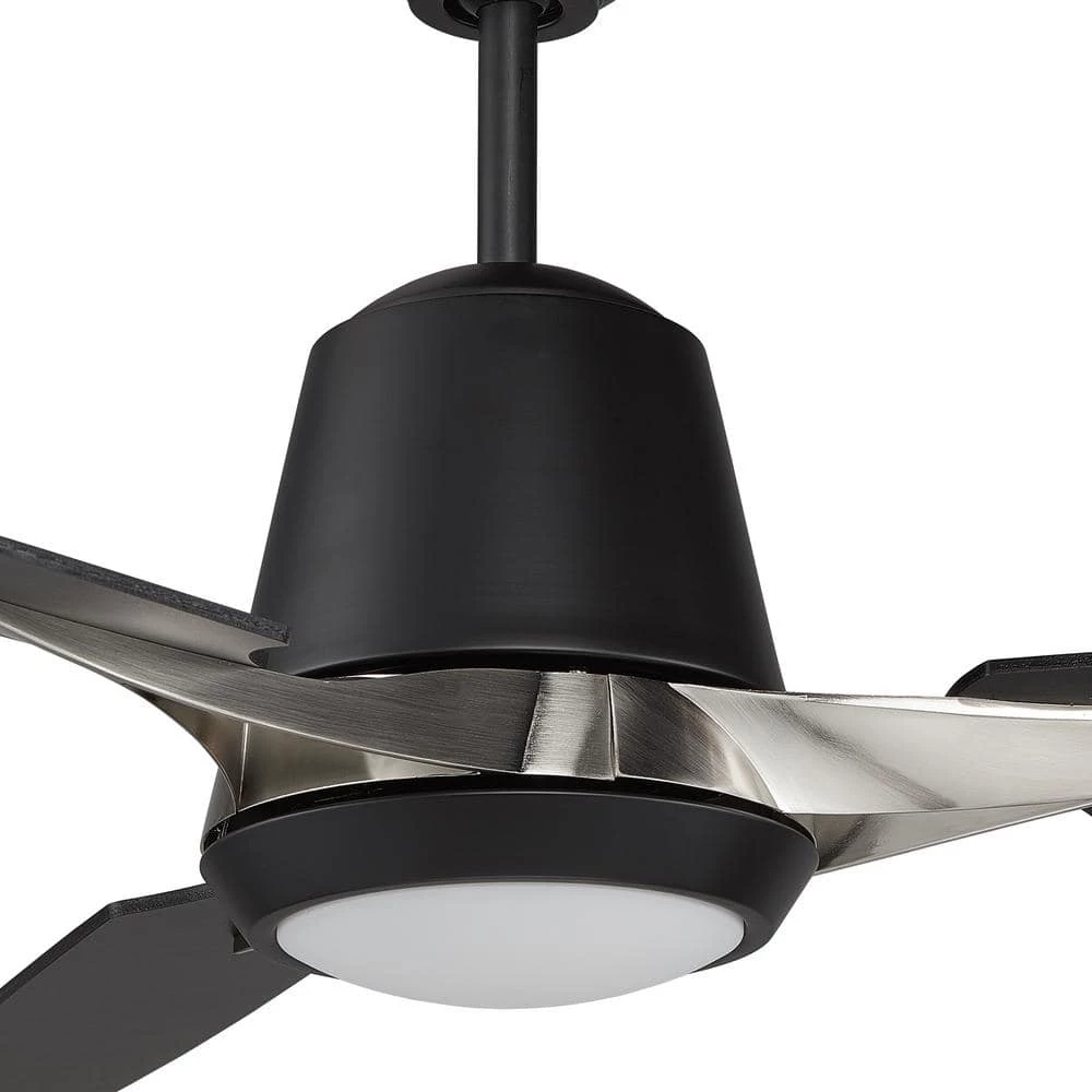- The Exton 52″ smart ceiling fan comes in two different color combinations: white fan blades/white finish motor hub and black fan blades/black motor hub.