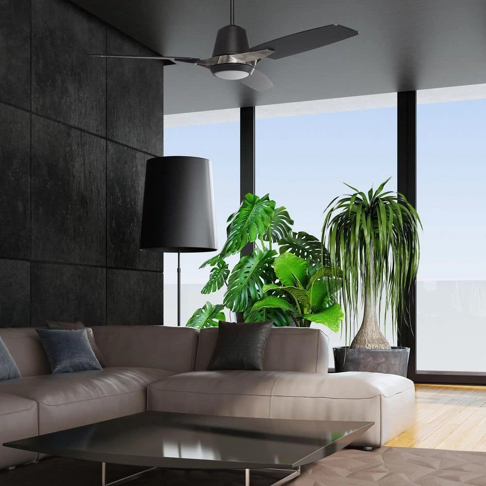 Sleek and stylish, and it comes in four different colors, the Exton 52″ ceiling fan’s ceiling fan turns a house into a home. Perfectly crafted for the modernity of rustic design, but still ahead of the curve with its digital shine, the Exton 52″ ceiling fan is a versatile feast for the eyes. The ceiling fan’s ultra-light and durable blades come in two colors: black and white. The Exton 52″ delivers 4657 CFM high-velocity airflow, powered by a 3-speed reversible incredibly efficient whisper-quiet AC motor that allows you to change the direction in summer and winter. The ceiling fan is compatible with Google Home Assistant, Siri Shortcuts, and Alexa. The smart wall switch controls the fan’s speed and light setting, and you can also use the Carrohome App. The Wi-Fi-based smart ceiling fan also uses three elegant plywood blades, and an integrated 3000K LED light kit with warm light. Lastly, the ceiling fan includes a 6″ downrod for the proper distance between the ceiling and the fan. The Exton 52″ ceiling fan is the right ceiling fan for the modern home.