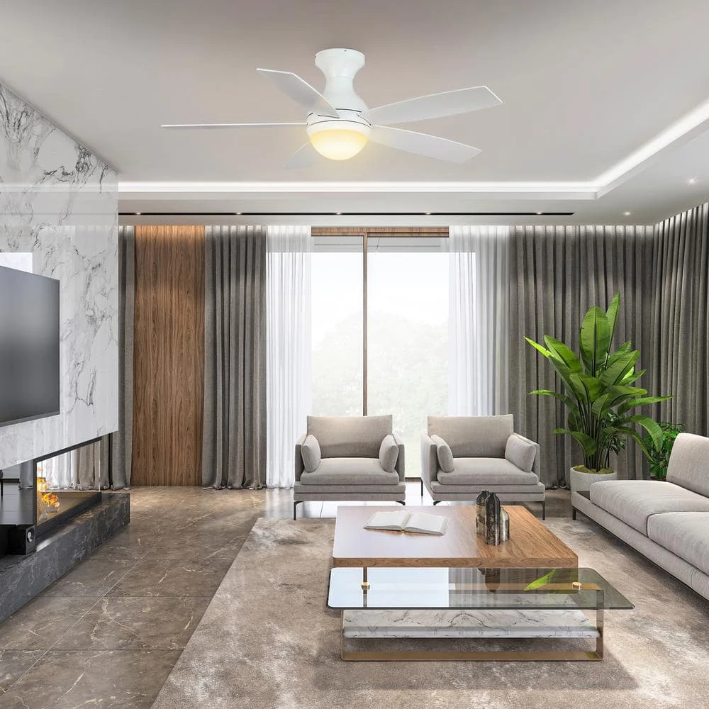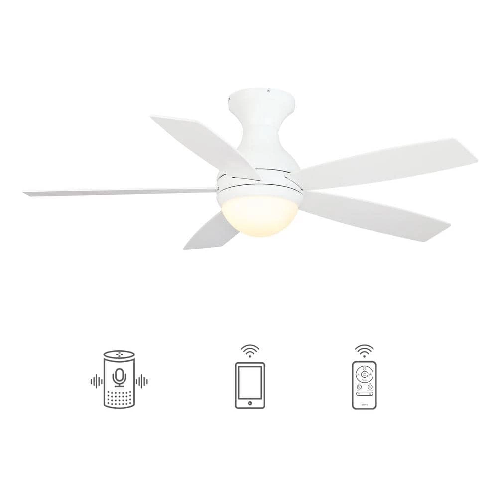 This Fannin 52 in. smart ceiling fan was created to transform your outdoor patio into a beachside resort. Enjoy the cooling and powerful airflow that its long blades deliver during Summer afternoons or bask in the warm bright light on winter evenings. The fan features a burnished metal exterior white and complementing blades for a modern addition to any home decor.