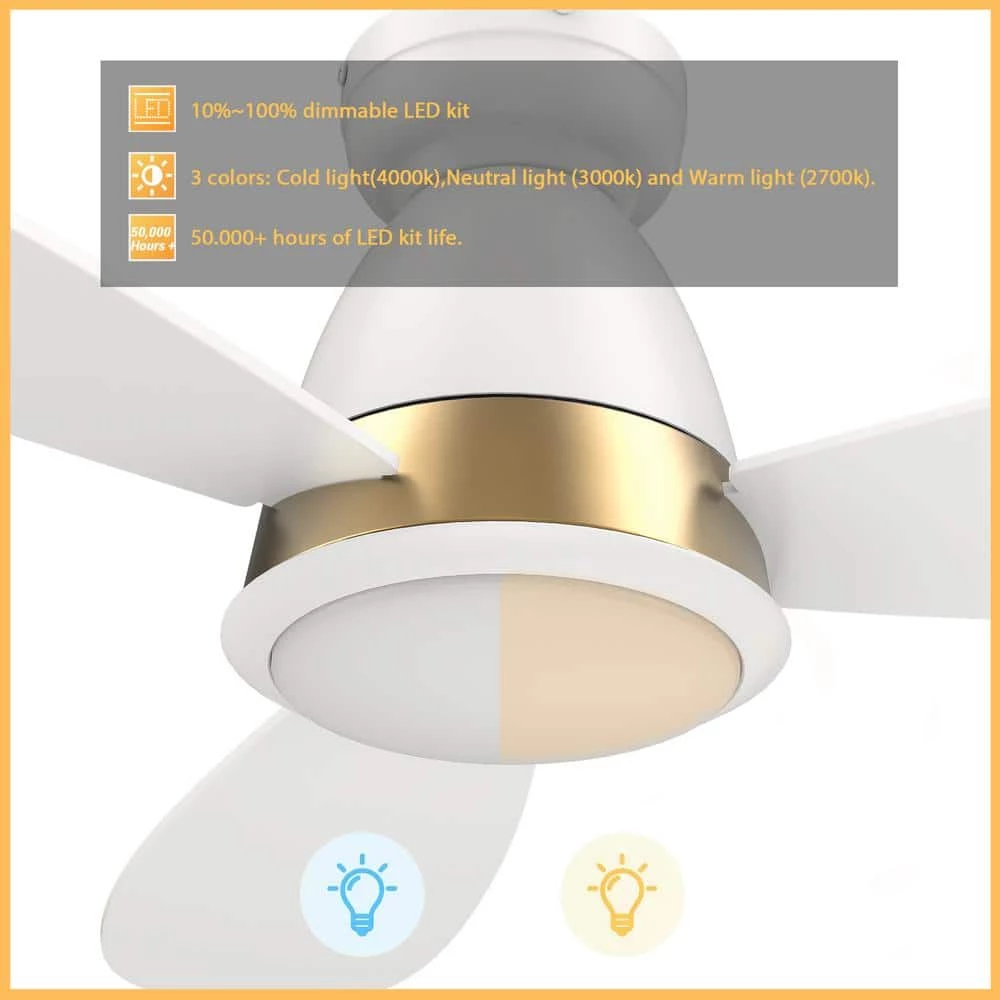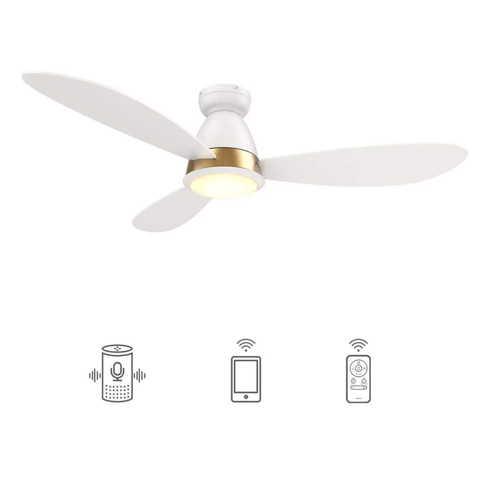 This Fayette 52 in. smart ceiling fan was created to transform your outdoor patio into a beachside resort. Enjoy the cooling and powerful airflow that its long blades deliver during Summer afternoons or bask in the warm bright light on Winter evenings. The fan features a burnished metal exterior white, complementing blades and elegant gold accents for a modern addition to any home decor.