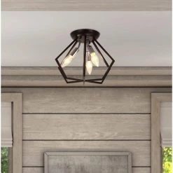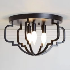 Paxton 11.75 in. 3-Light Black Semi-Flush Mount Light by Decor Therapy