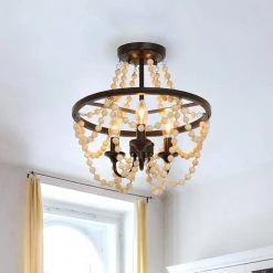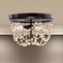 Jasper 13.25 in. 3-Light Bronze and Wood Bead Flush Mount by Decor Therapy