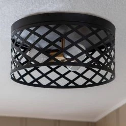 Doyle Geometric 8 in. 1-Light Black Flush Mount by Decor Therapy
