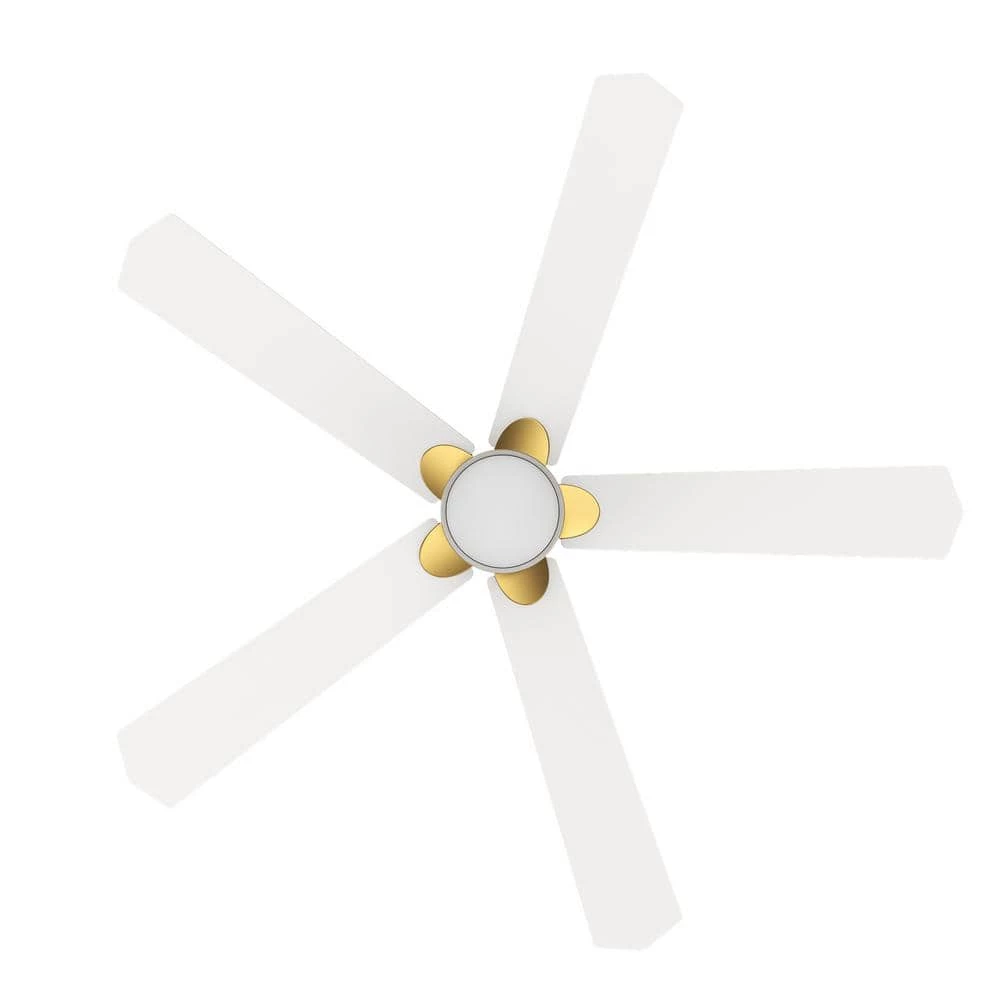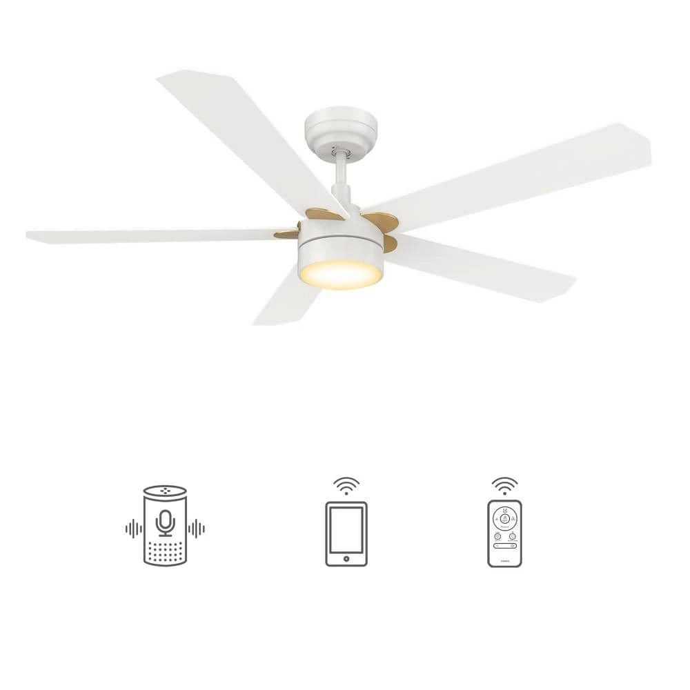 This Granby 52 in. smart ceiling fan was created to transform your outdoor patio into a beachside resort. Enjoy the cooling and powerful airflow that its long blades deliver during Summer afternoons or bask in the warm bright light on Winter evenings. The fan features a burnished metal exterior white, complementing blades and elegant gold accents for a modern addition to any home decor.