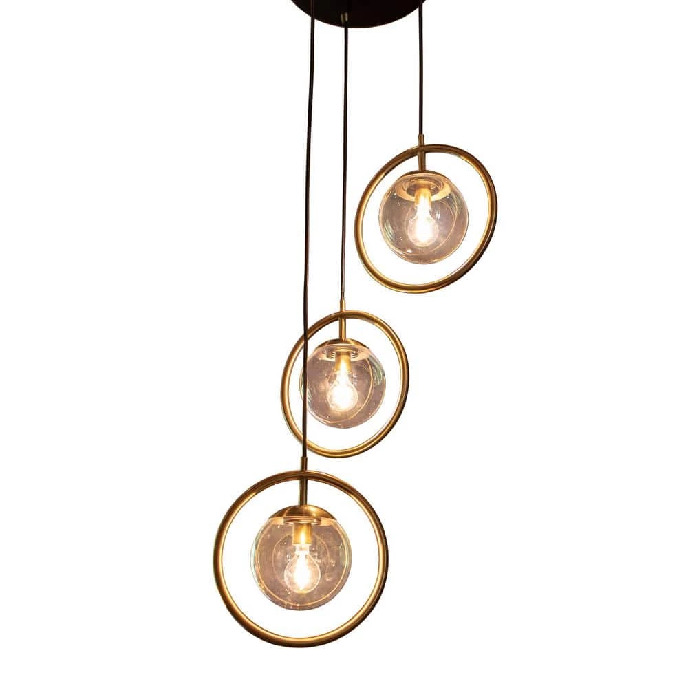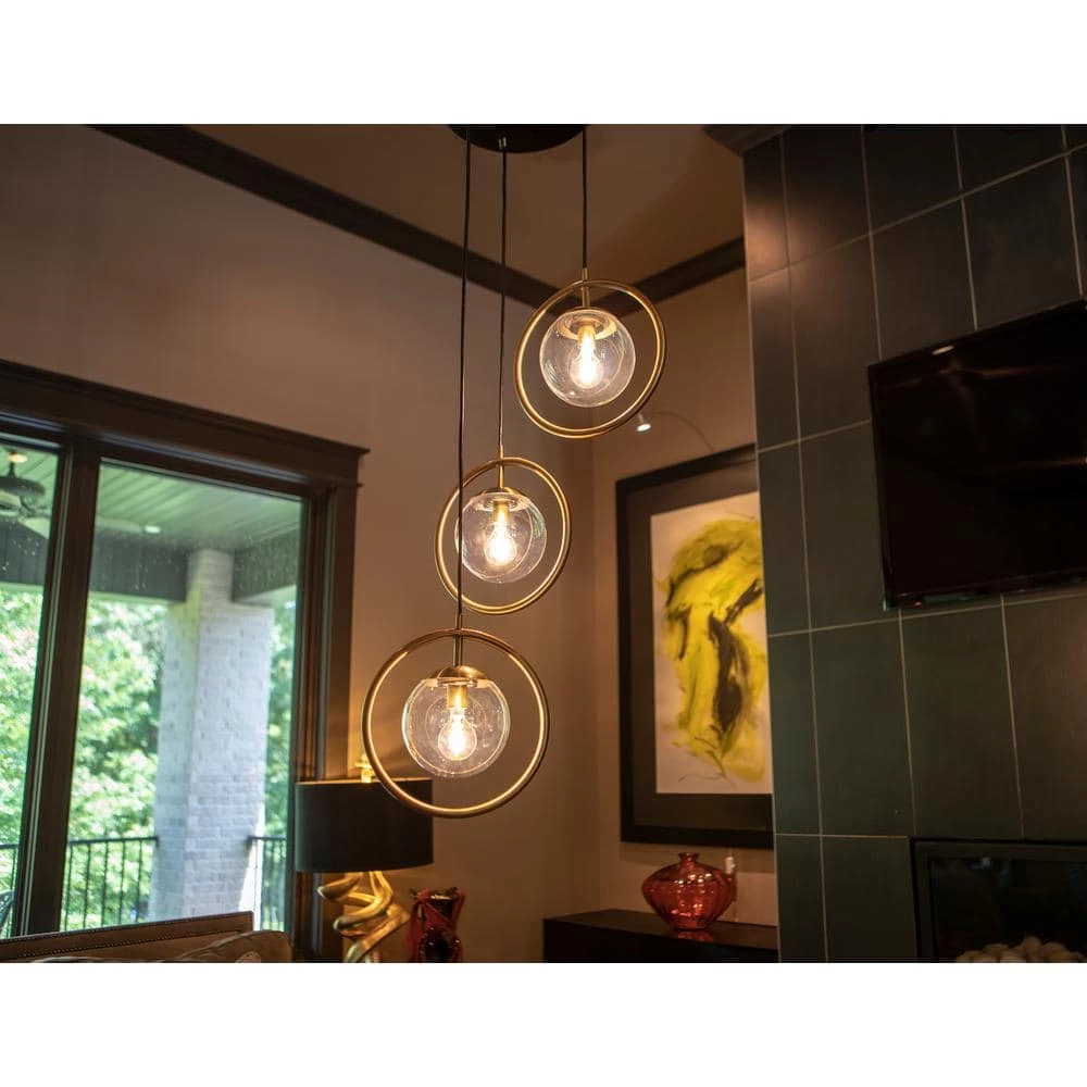 The right light fixture has the ability to take a space from mundane to wow. The Griggs pendant will draw the eye with its unique shape, adding interest and dimension to your space. The clean modern lines are complimented by the luxe finish and adds a glamorous appeal even while the fixture is off. Three large globe shaped bulbs are suspended at various heights and add a cool mid-century modern vibe. Exposed bulbs help create a well-lit space. Hang the Griggs pendant over your kitchen island or dining table to instantly transform your room while brightening your space. Constructed of steel, glass and copper. Requires three (3) 60-Watt bulbs, not included. Measures 18x14x18 in.