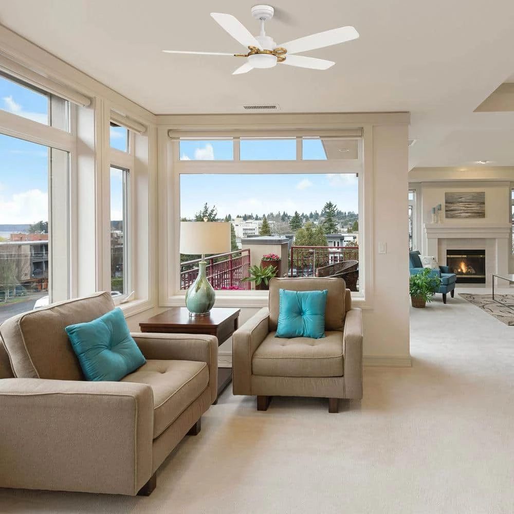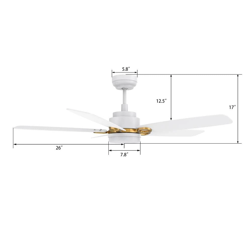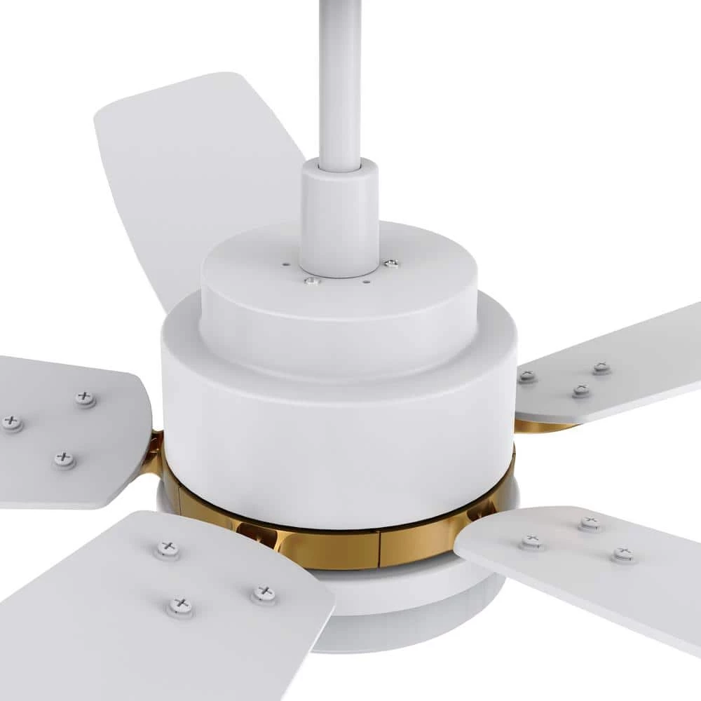 This Havre 52 in. smart ceiling fan was created to transform your outdoor patio into a beachside resort. Enjoy the cooling and powerful airflow that its long blades deliver during summer afternoons or bask in the warm bright light on winter evenings. The fan features a burnished metal exterior white, complementing blades and elegant gold accents for a modern addition to any home decor.