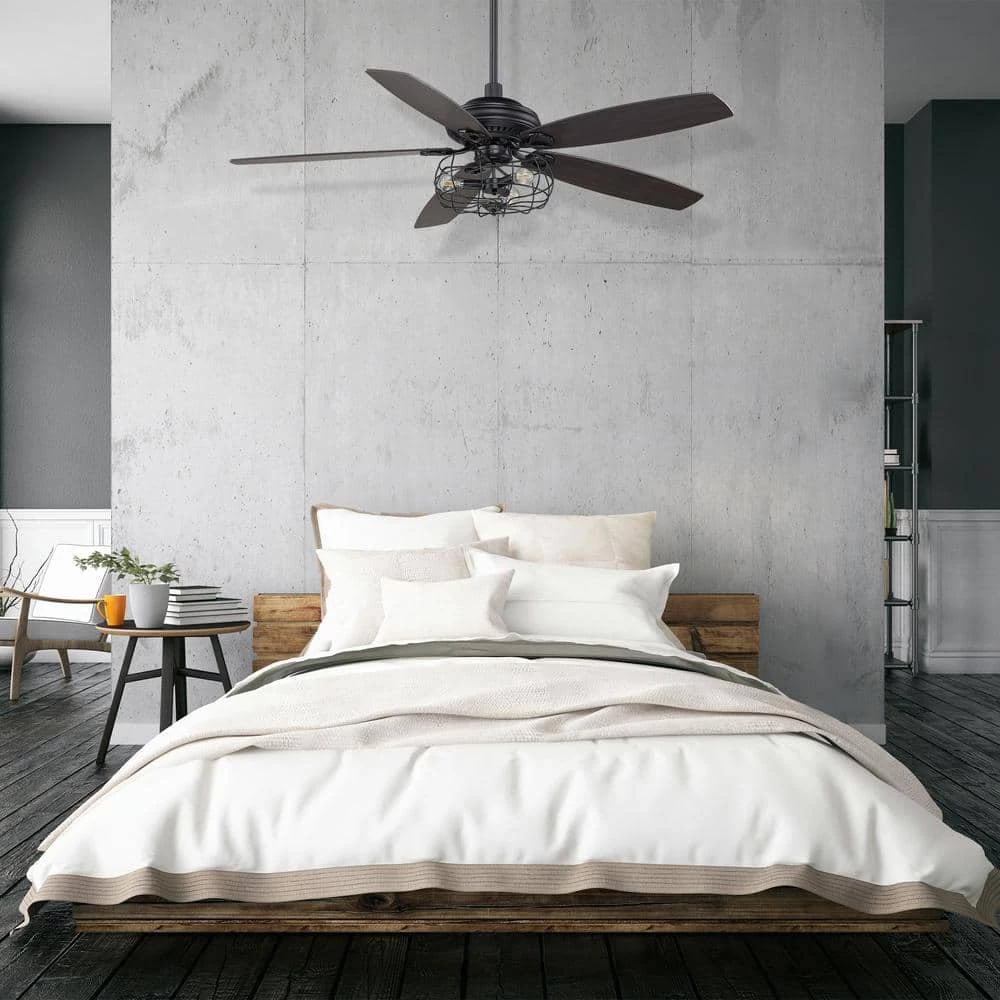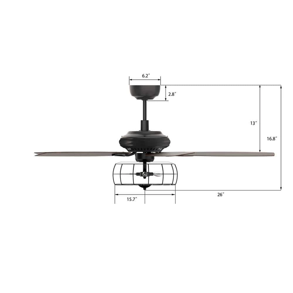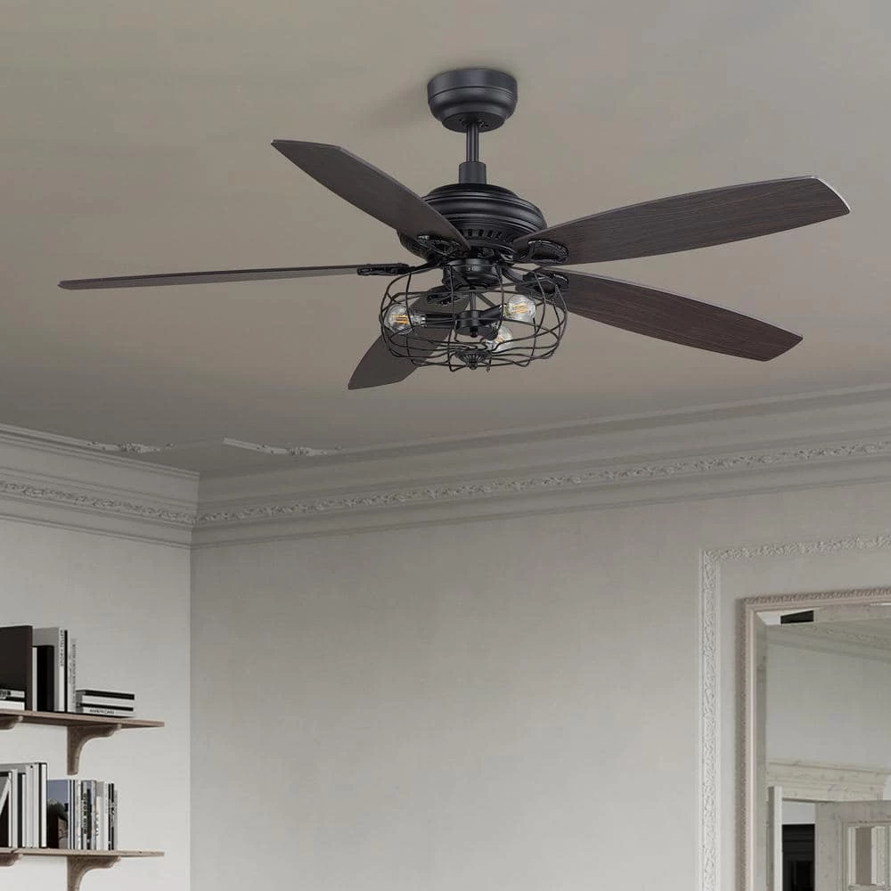 Our Henderson 52″ has a modern and cagey soft gothic sophisticated ceiling fixture blends digital technology with a stylish hand touch. The Henderson 52″ includes remote control settings to regulate the light and speed functions easily. The Henderson 52″ ceiling fan comes alive with five sensationally sturdy, high-quality plywood blades, a genie lamp-like black cage light, and includes 3xE12 bulb bases (bulb not included). With a high-velocity airflow at 4490 CFM, the indoor ceiling fan holds a powerful 10-speed reversible DC motor that allows you to change the direction of the airflow throughout the seasons and delivers ultra-powerful airflow. The Henderson 52″ ceiling fan’s remote adjusts to the lighting of the ceiling fan at ten wind speeds, supports timing (1-8 hours) sleep shutdown, and schedules to adjust speed any time. The fan or illumination can be turned on/off separately. The Henderson 52″ ceiling fan has a standard and angled mounting that is sure to catch our attention.