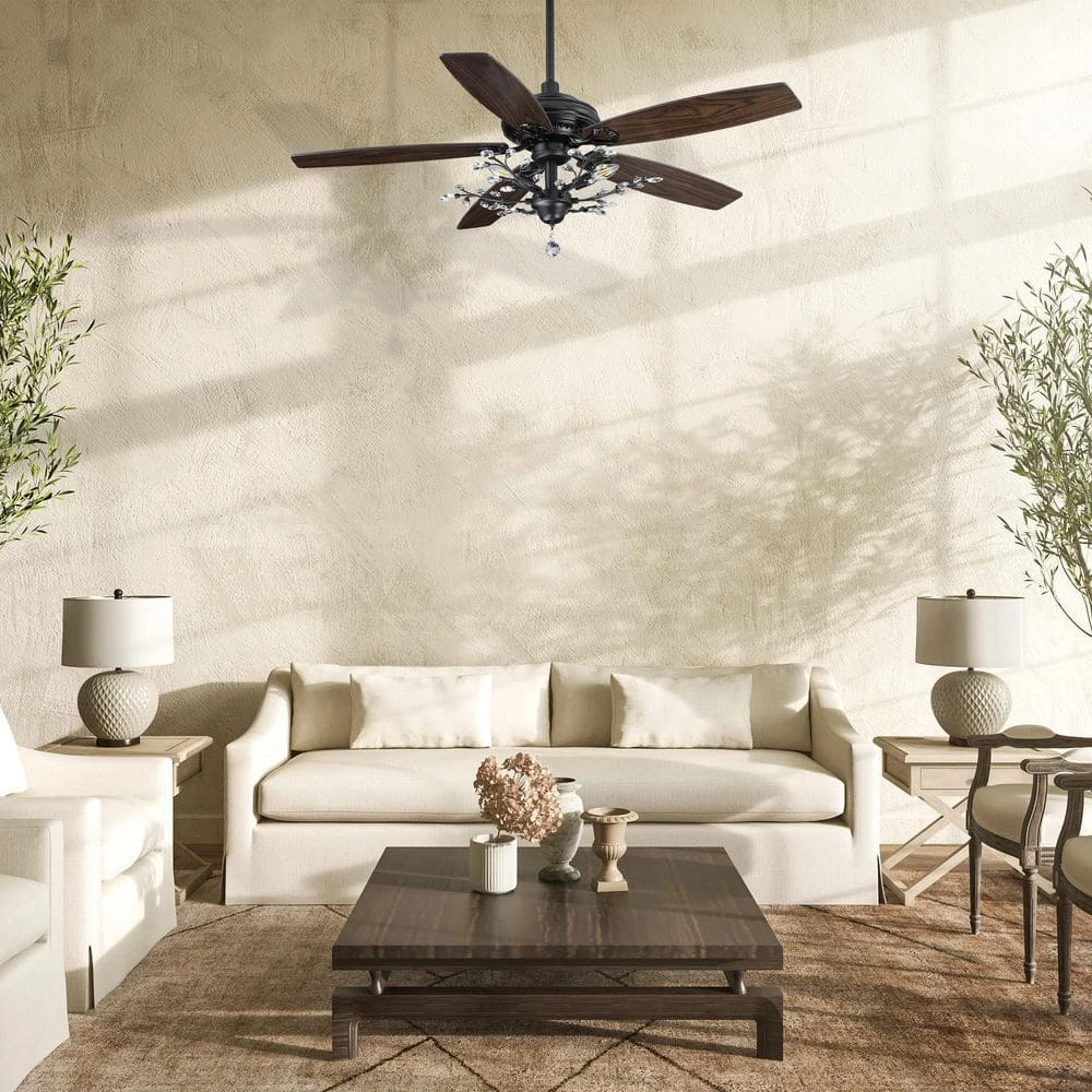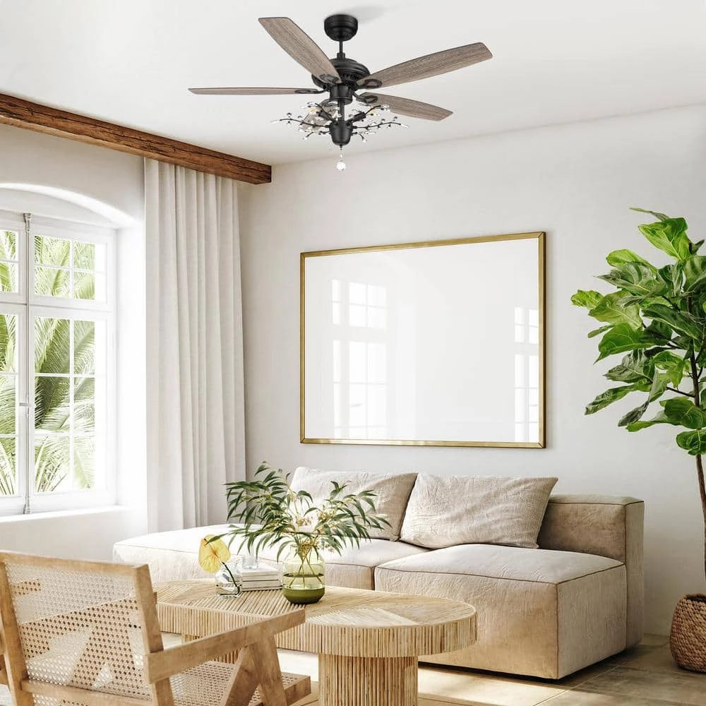 Our Henderson 52 in. has a modern and soft romantic sophisticated ceiling fixture blends digital technology with a stylish hand touch. The Henderson 52 in. includes remote control settings to regulate the light and speed functions easily. The Henderson 52 in. ceiling fan comes alive with 5 sensationally sturdy, high-quality plywood blades, and includes 3 x E12 bulb bases (bulb not included). With a high-velocity airflow at 4490 CFM, the indoor ceiling fan holds a powerful 10-speed reversible DC motor that allows you to change the direction of the airflow throughout the seasons and delivers ultra-powerful airflow. The Henderson 52 in. ceiling fan’s remote adjusts to the lighting of the ceiling fan at ten wind speeds, supports timing (1-hours to-8 hours) sleep shutdown, and schedules to adjust speed any time. The fan or illumination can be turned on/off separately. The Henderson 52 in. ceiling fan has a standard and angled mounting that is sure to catch our attention.