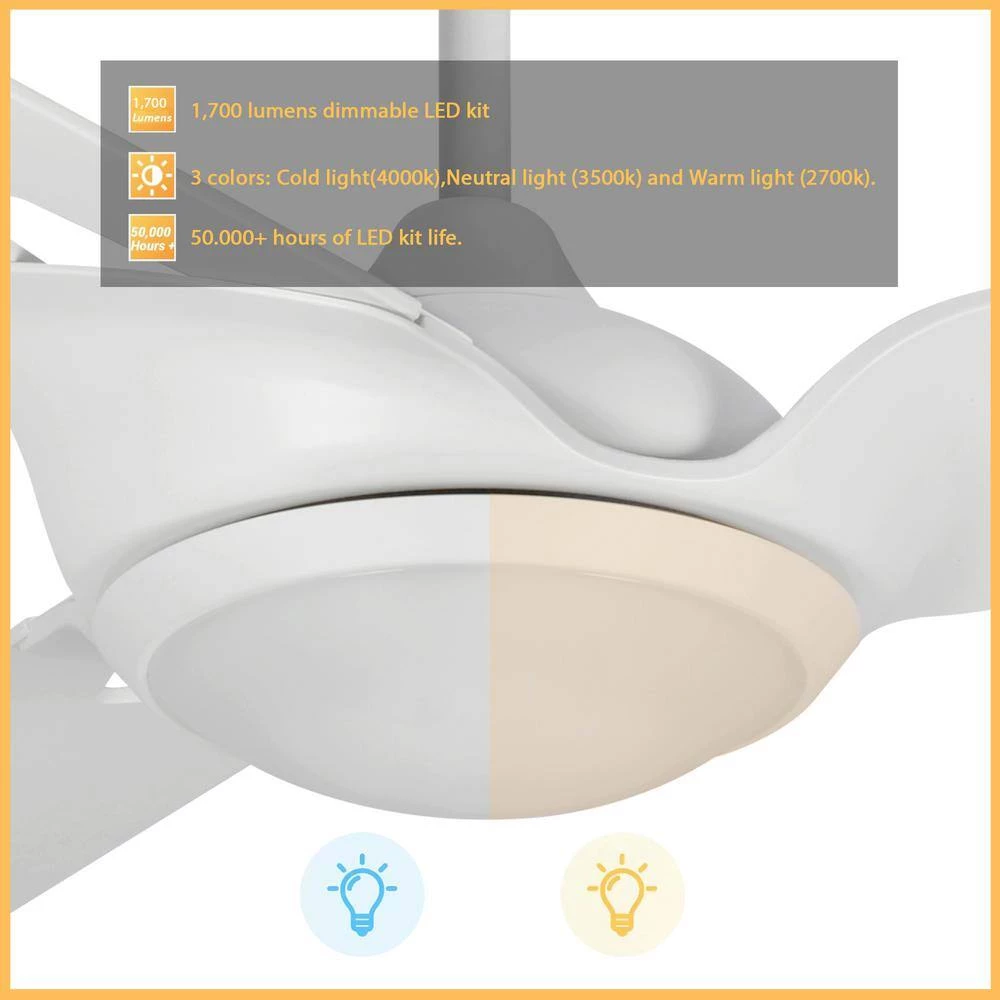 This Innovator 56 in. smart ceiling fan keeps your space cool, bright and stylish. It is a soft modern masterpiece perfect for your large indoor living spaces. This Wifi smart ceiling fan is a simple design with white finish, using high quality plywood blades and has an integrated 4000K daylight LED. The fan features remote control, Wi-Fi apps and Voice Control Technology (compatible with Amazon Alexa and Google Home Assistant, but not included) to set fan preferences.
