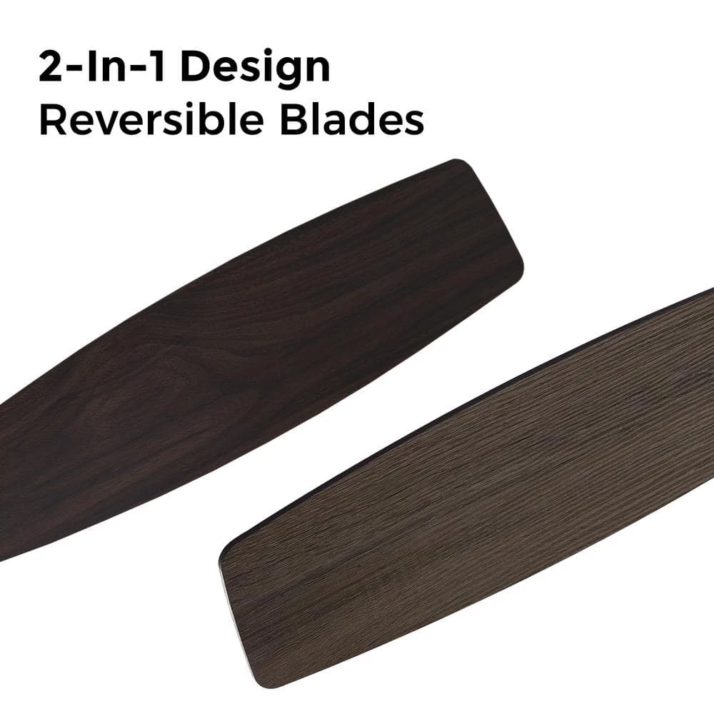 - The Keller 52″ is equipped with 5-reversible wood-finished, highly durable, and ultra-light plywood blades.
