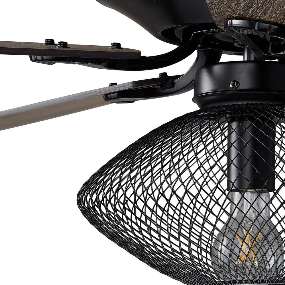 - Keller 56″ ceiling fan opts for a more straightforward design with a traditional cage light ceiling fan, perfect as the centerpiece to large rooms. The chic light Southern gothic aesthetic drives home modernity rarely executed to its full potential with the Keller 56″ ceiling fan. The combination of the black metal base and the lamp-like cage light perfectly encapsulates the candlelight dinner mood in the room.