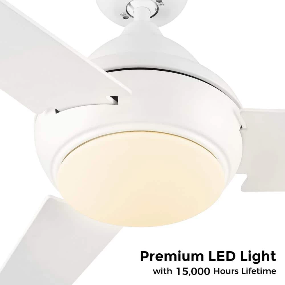 - Alongside the whisper-quiet DC motor-powered ceiling fan, the konfor 52 in. is equipped with 3-reversible white-finished, highly durable, and ultra-light plywood blades