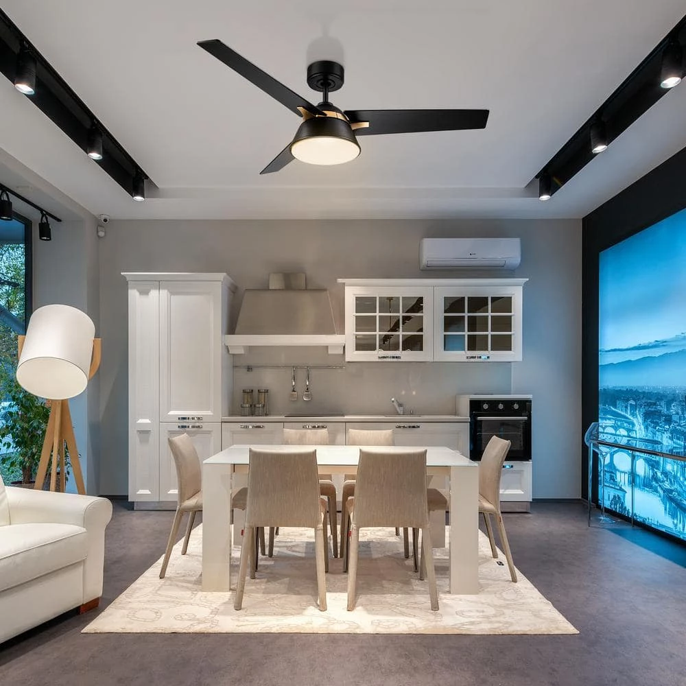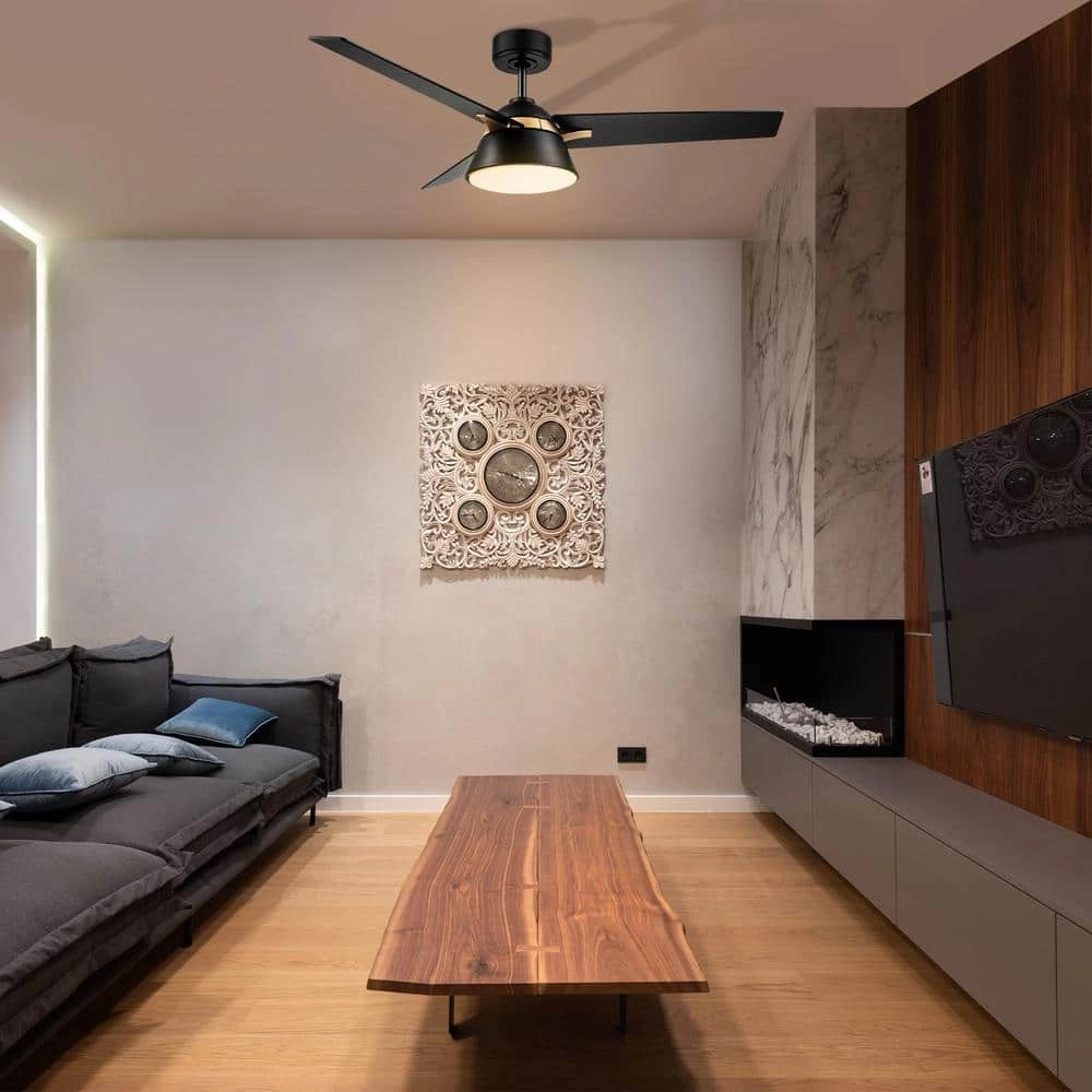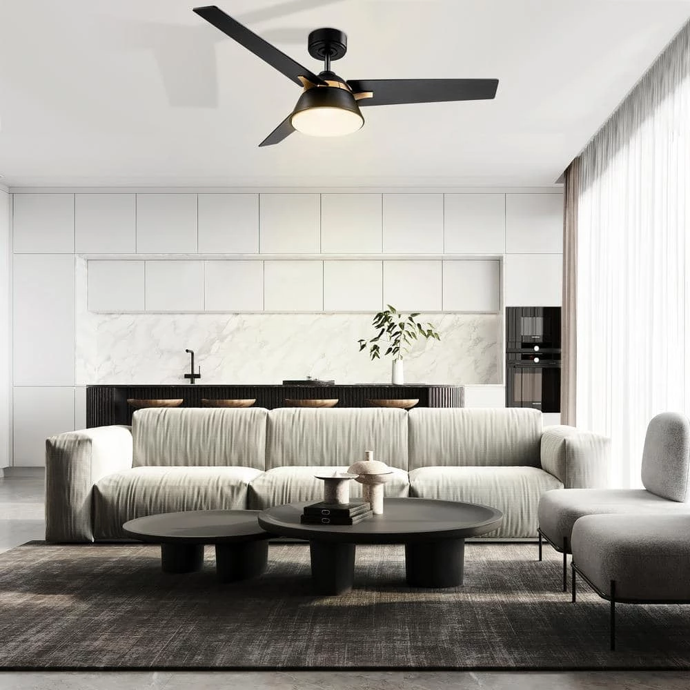 - Equipped with 3 contoured blades in a polished black and gold decor finish with a diameter of 48 in. to fit seamlessly into any space, large or small