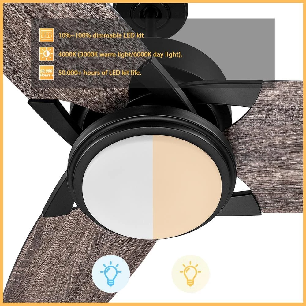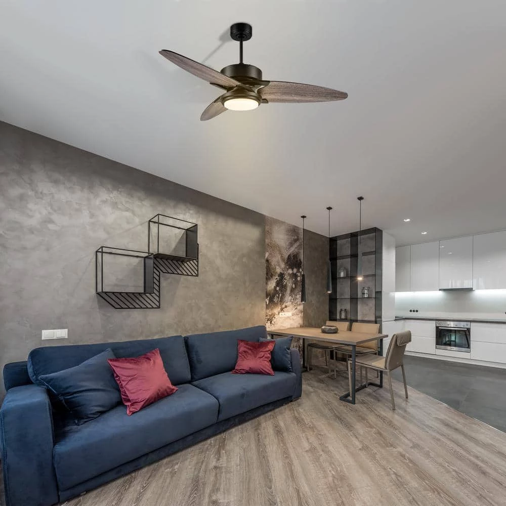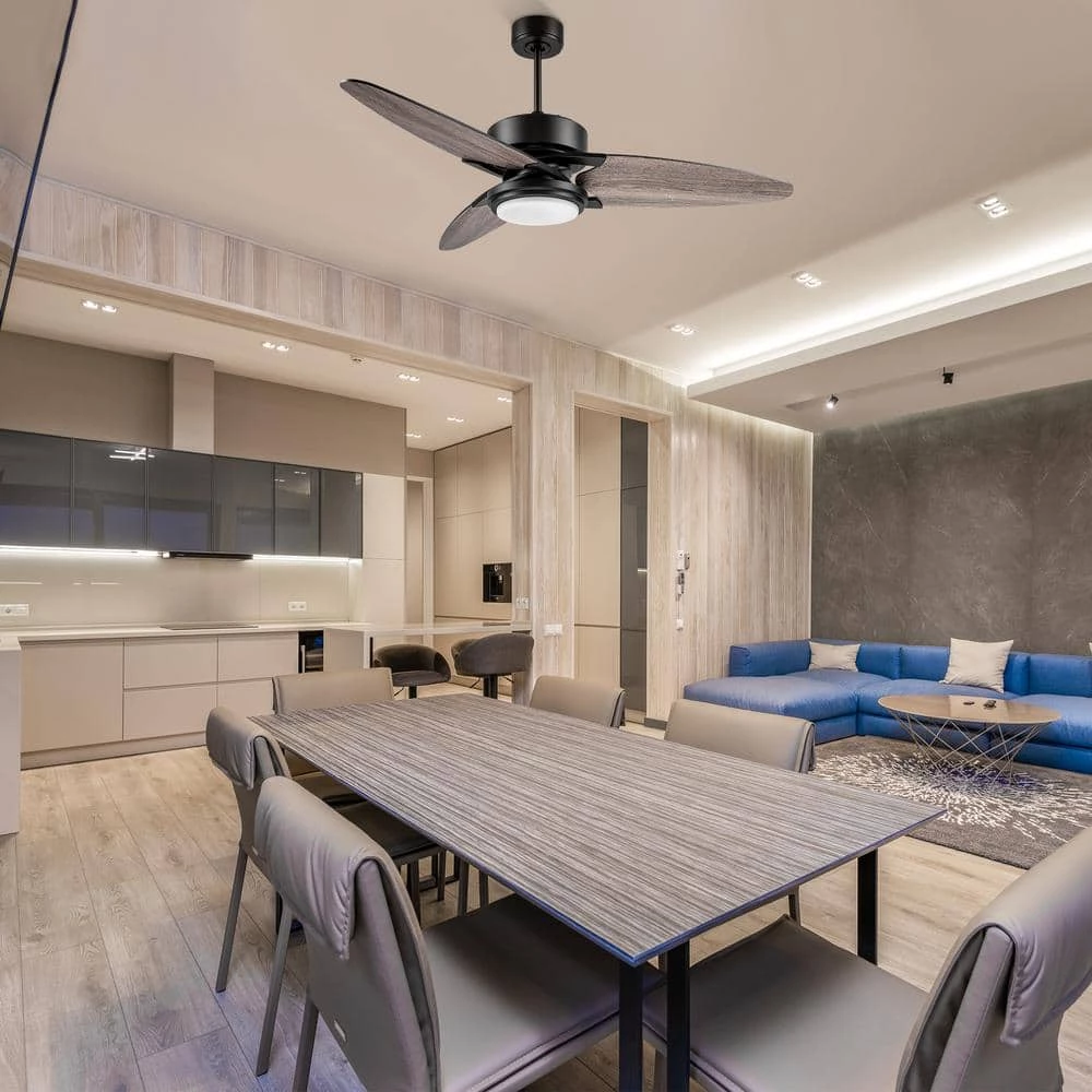 This Maxwell 52 in. Ceiling Fan features an exterior you can admire and a performance you can rely on. Designed with uniquely shaped and aerodynamic blades, a sleek metal canopy, downrod, motor hub and modern blade accents, this fan is sure to dazzle anyone who enters your home. Select the perfect finish to complement any decor trend, such as the light wood for a Kanso-inspired interior or the black for a contemporary space.