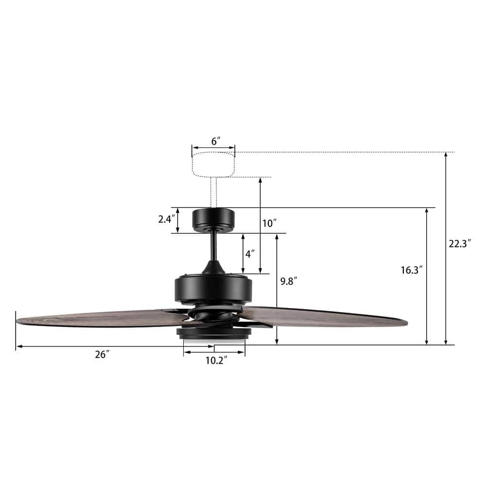 - Equipped with 3 contoured blades in a polished black finish with a diameter of 52 in. to fit seamlessly into any space, large or small