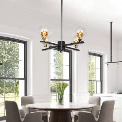 Ravenna 4-Light 18-Watt Integrated LED Black Pendant with Double Wall Glass Shade by CARRO