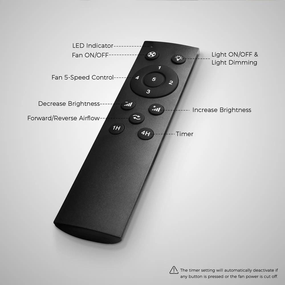 - Fan is powered by a 5-speed DC motor that is proven to be more energy-efficient than traditional AC motors without compromising performance, enjoy super silent and strong airflow with a speed of up to 5,600 CFM, adjustable speed options, support timer and reversible airflow