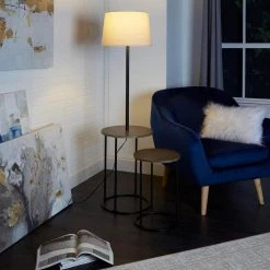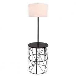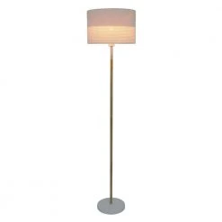 61 in. Cassidy White and Wood Painted Iron Floor Lamp with Bamboo Lamp Shade by Decor Therapy