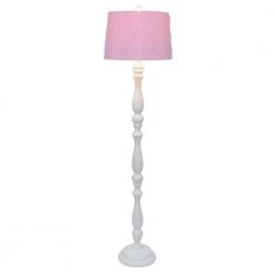 59 .5 in. Polly White Turned Column Metal Floor Lamp with Butterfly Cut Pink Shade by Decor Therapy
