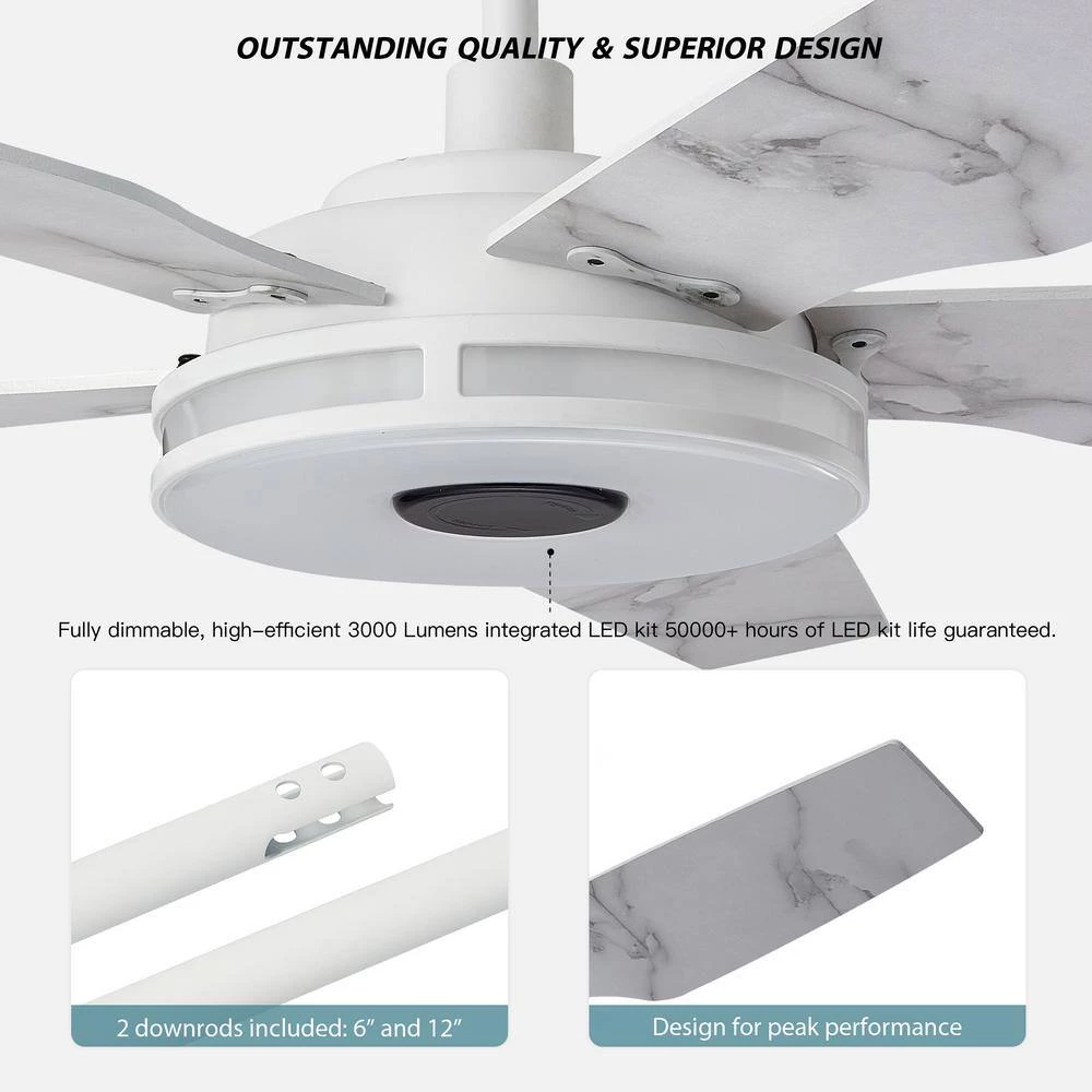 This Starfish 56 in. smart ceiling fan keeps your space cool, bright and stylish. It is a soft modern masterpiece perfect for your large indoor living spaces. This Wi-Fi smart ceiling fan is a simple design with white finish, using 5 high quality plywood blades and has an integrated 4000K daylight LED. The fan features remote control, Wi-Fi apps and Voice Control Technology (compatible with Amazon Alexa and Google Home Assistant, but not included) to set fan preferences.