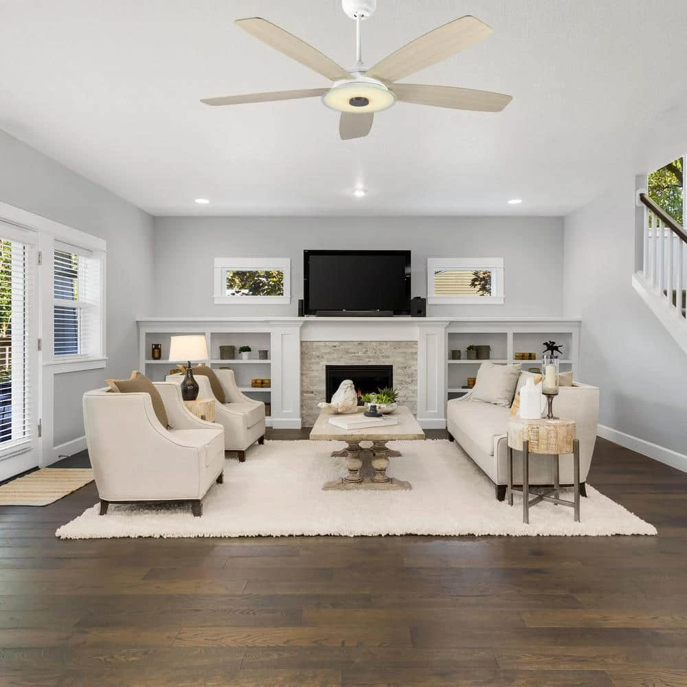 This Striker 52 in. smart ceiling fan keeps your space cool, bright, and stylish. It is a soft modern masterpiece perfect for your large indoor living spaces. This Wi-Fi smart ceiling fan is a simple design with white finish, using 5 high quality plywood blades and has an integrated 4000K daylight LED. The fan features remote control, Wi-Fi apps and Voice Control Technology (compatible with Amazon Alexa and Google Home Assistant, but not included) to set fan preferences.