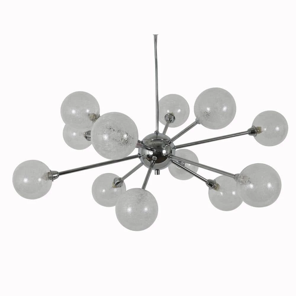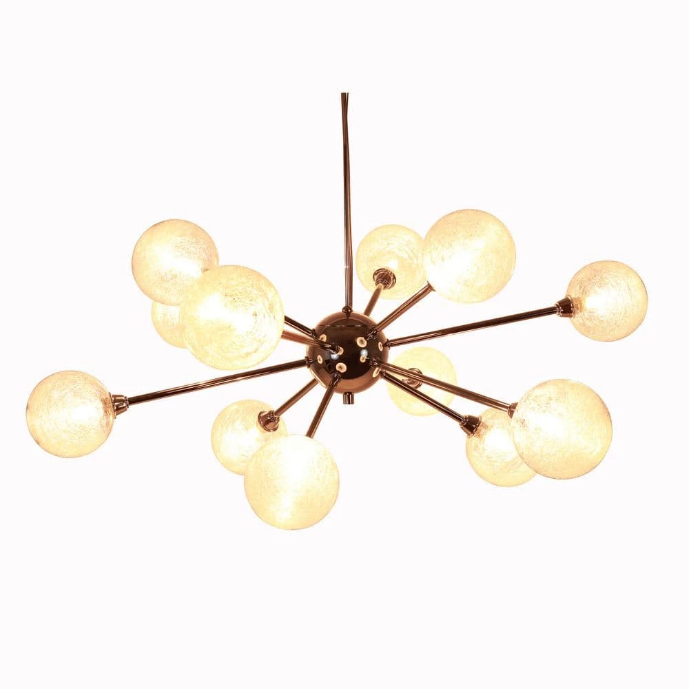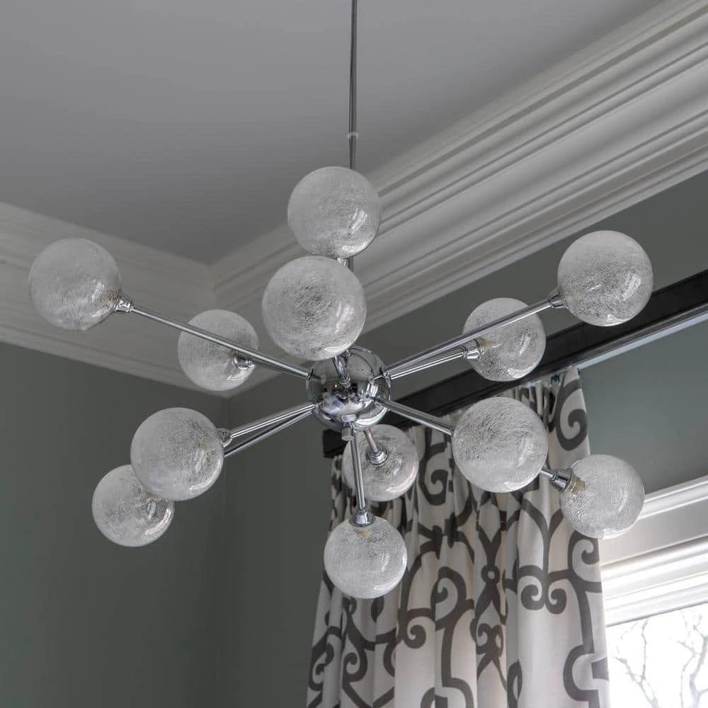 Complete your living room, dining room or foyer design with the eye catching, icon look of the Susan 12 Light Sputnik Pendant. Suspended from a cord, this hardwired pendant will become the crowning jewel of your space while adding both dimension and light to your aesthetic. The steel frame boasts an artful display of 12 arms radiating from a central point. At the end of each arm a clear glass globe-shaped shade with glass fibers, for added character, houses a single G9 Xenon bulb (included). Hang this hardwired light fixture above your bed, dining table or in the middle of your family room to create a well-lit space with a pop of mid-century modern allure. Requires twelve (12) 40-Watt G9 Xenon bulbs, included. Constructed of steel and glass. Measures 30 in. x 30 in. x 16.5 in.