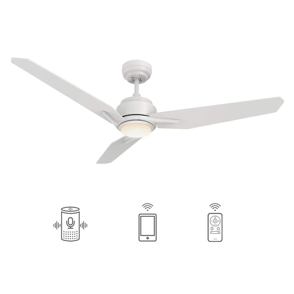 This Tilbury 56 in. smart ceiling fan was created to transform your outdoor patio into a beachside resort. Enjoy the cooling and powerful airflow that its long blades deliver during summer afternoons or bask in the warm bright light on winter evenings. The fan features a burnished metal exterior white and complementing blades for a modern addition to any home decor.