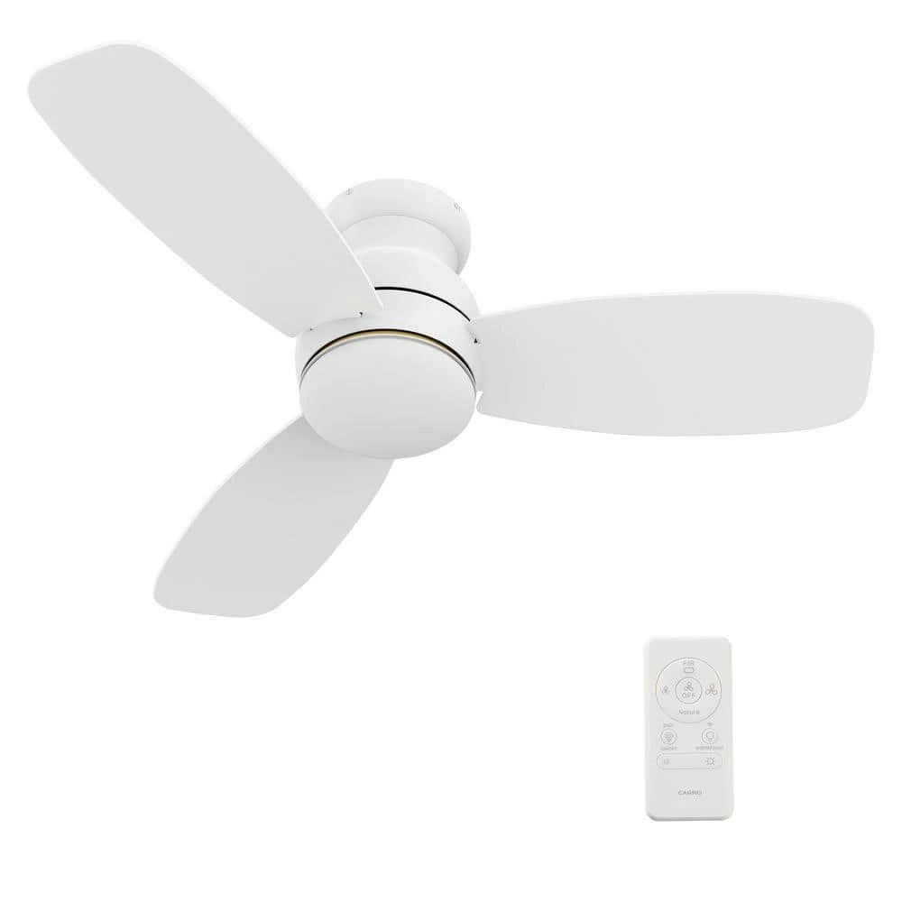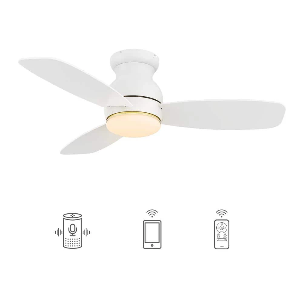 Compact and commanding, this Trendsetter 44 in. smart ceiling fan offers a simple and elegant design for even the most limited spaces. It is available in an array of colors and wood finishes to complement any decor trend. The fan features a burnished metal exterior white and complementing blades for a modern addition to any home decor.